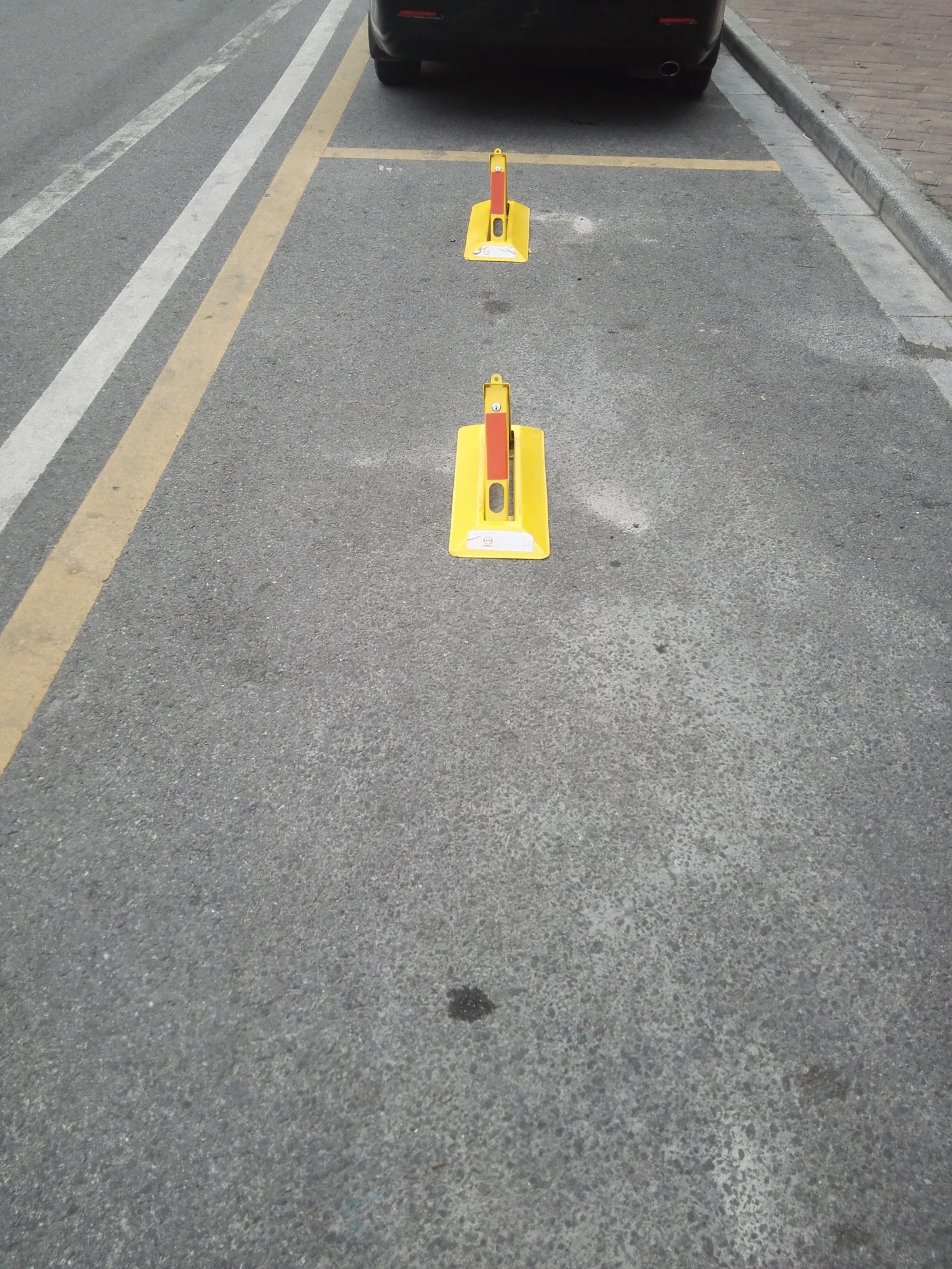 原来水东的马路停车位是可以这样占有的,早说咯……下次我在自家的门前设卡……车开过对路面会有一定的磨烂,这是我的门口、我的路……我得收费……不然不让车路过……