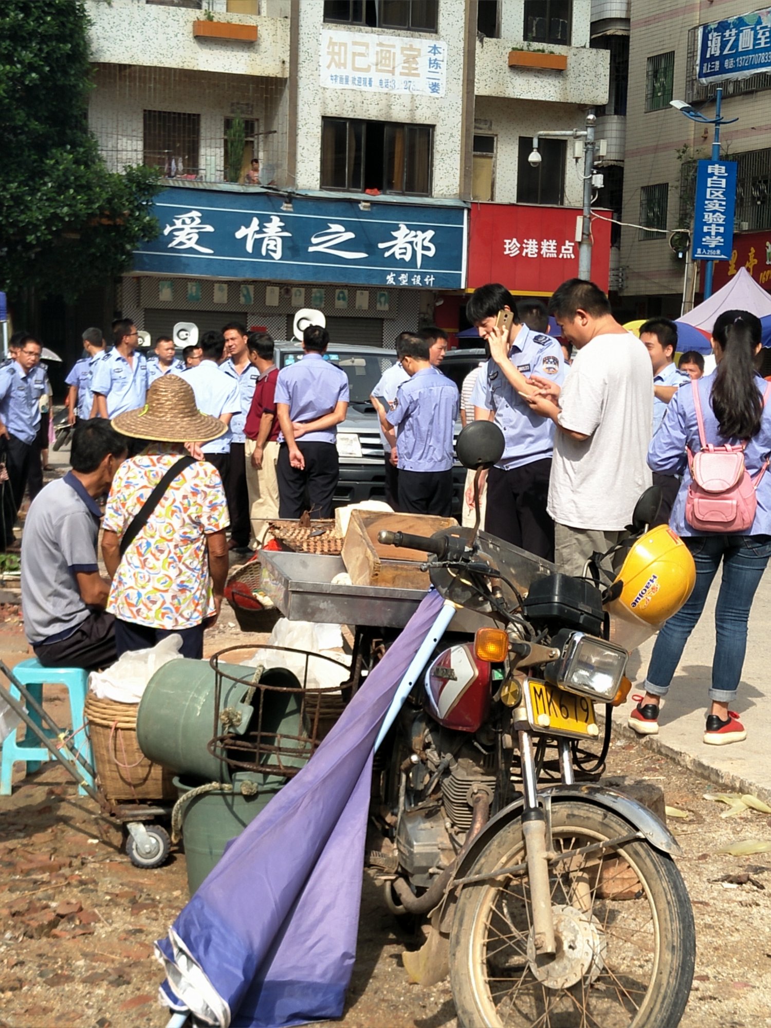 嘿!城管在行动,乱摆卖现象并未被管制。 问,你该死现场看电海北路脏乱差现象作何感想? 此次是走过场,还是现场调研后有作为还是有所不作为,有待揭晓谜底。 望,还干净畅顺学生通行道路。