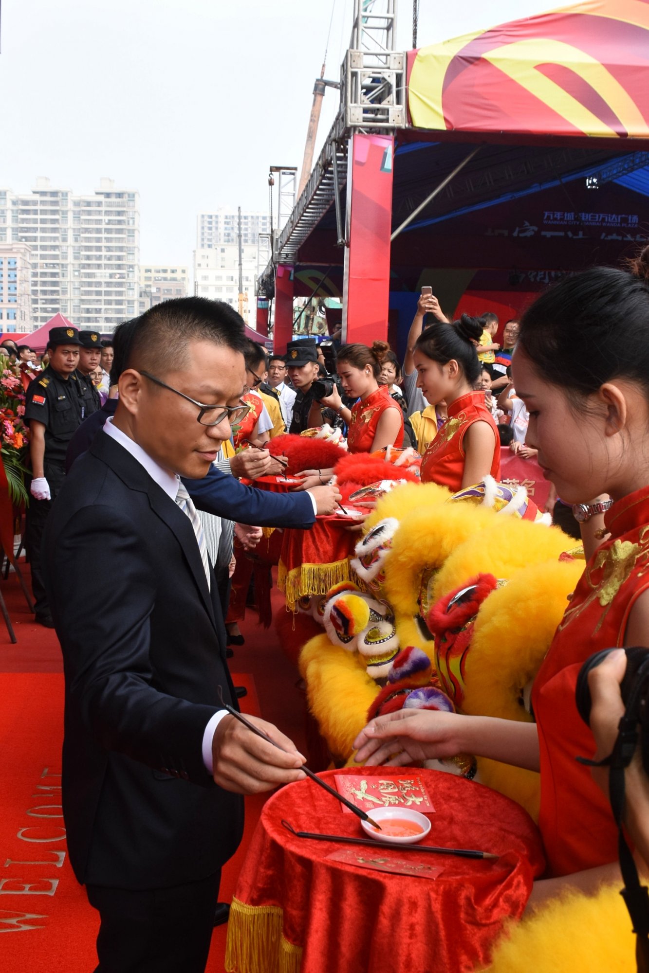 紧接着是精彩的醒狮采青,活动现场随醒狮表演而跃动起来。各单位领导为醒狮点睛,揭幕牌匾,共同推门进入崭新的营销中心,标志着这个粤西商业旗舰即将腾飞,与周边市民一起开启粤西大商业的新时代!