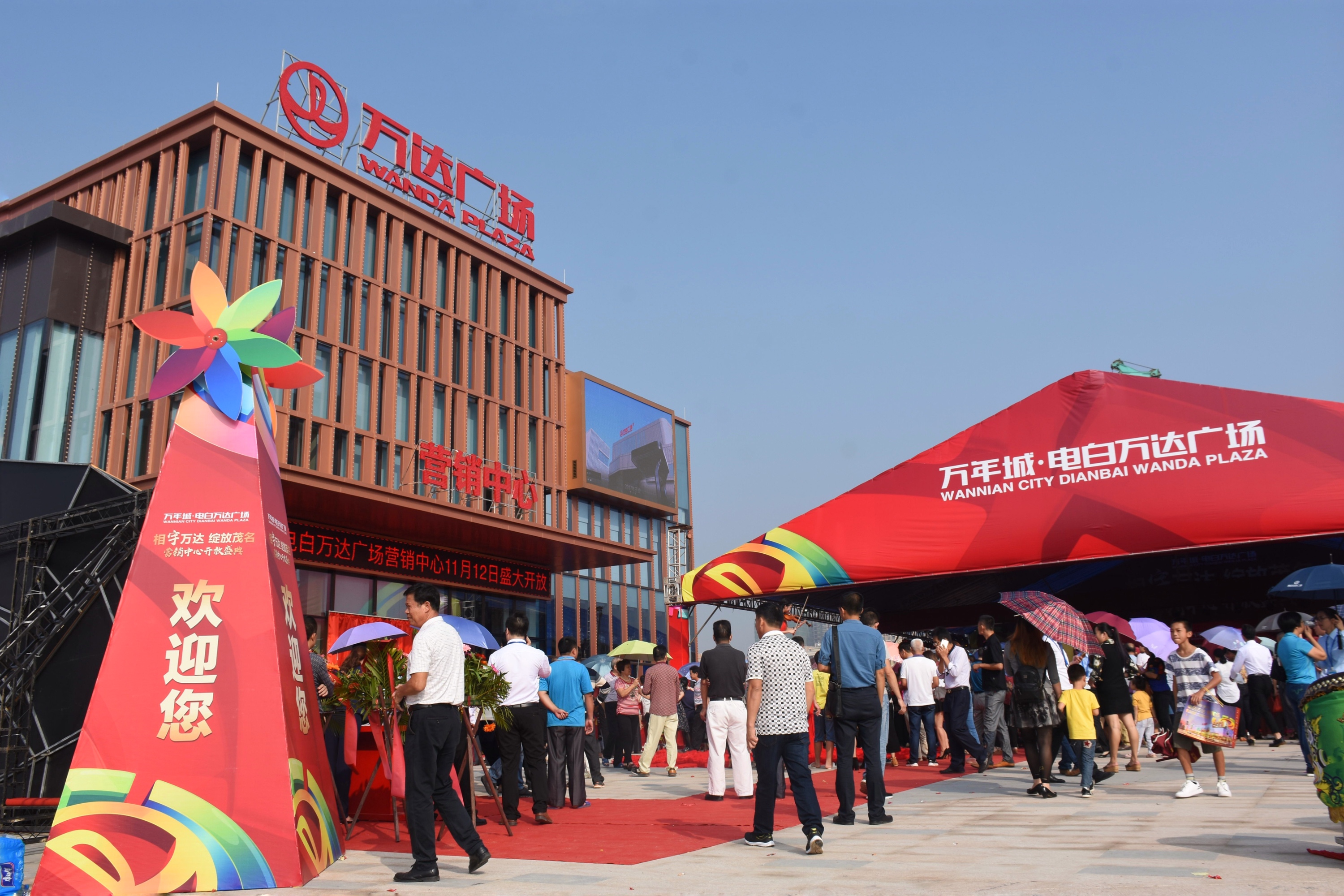 2017年11月12日,天气晴朗,万里无云,在茂名电白迎宾大道,万年城·电白万达广场营销中心盛大开放,香港TVB巨星陶大宇亲临现场,献唱万达!