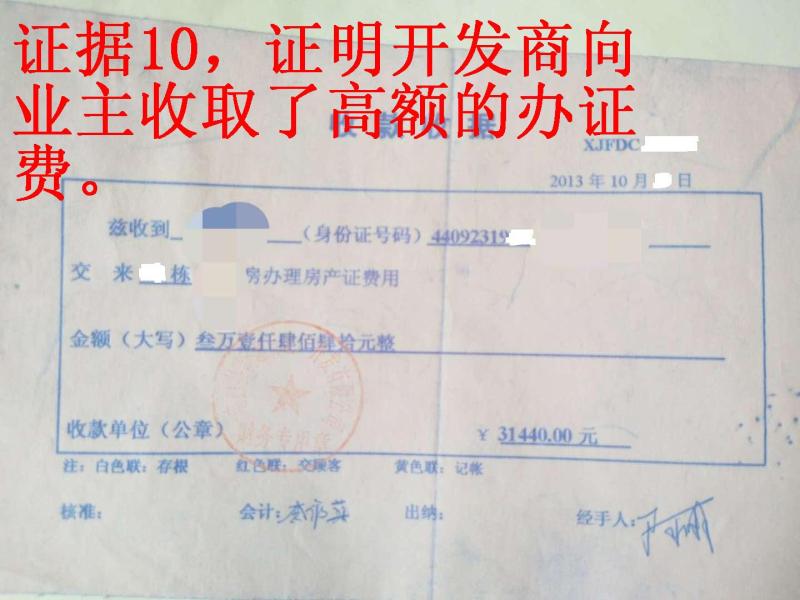 10.证明开发商向业主收取了高额办证费