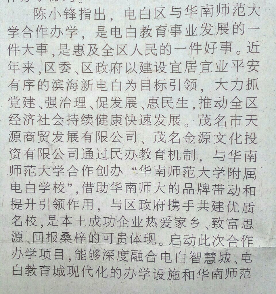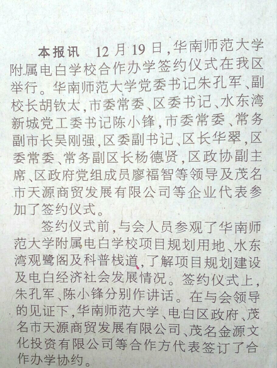 其他 报刊:华南师范大学附属学校落户电白~签约仪式
