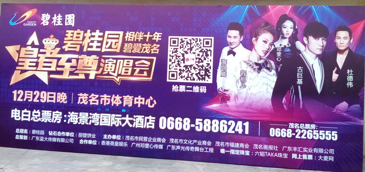 大海湾 说: 这些其实不能叫演唱会,就是跟万达广场一样请的明星商业表演唱歌一样,只不过万达广场进去看明星表演不要钱虽然请的不是大歌星。而茂南碧桂园虽然请了很多歌星但是要收门票而且还贼贵。 点击展开... 贼贵