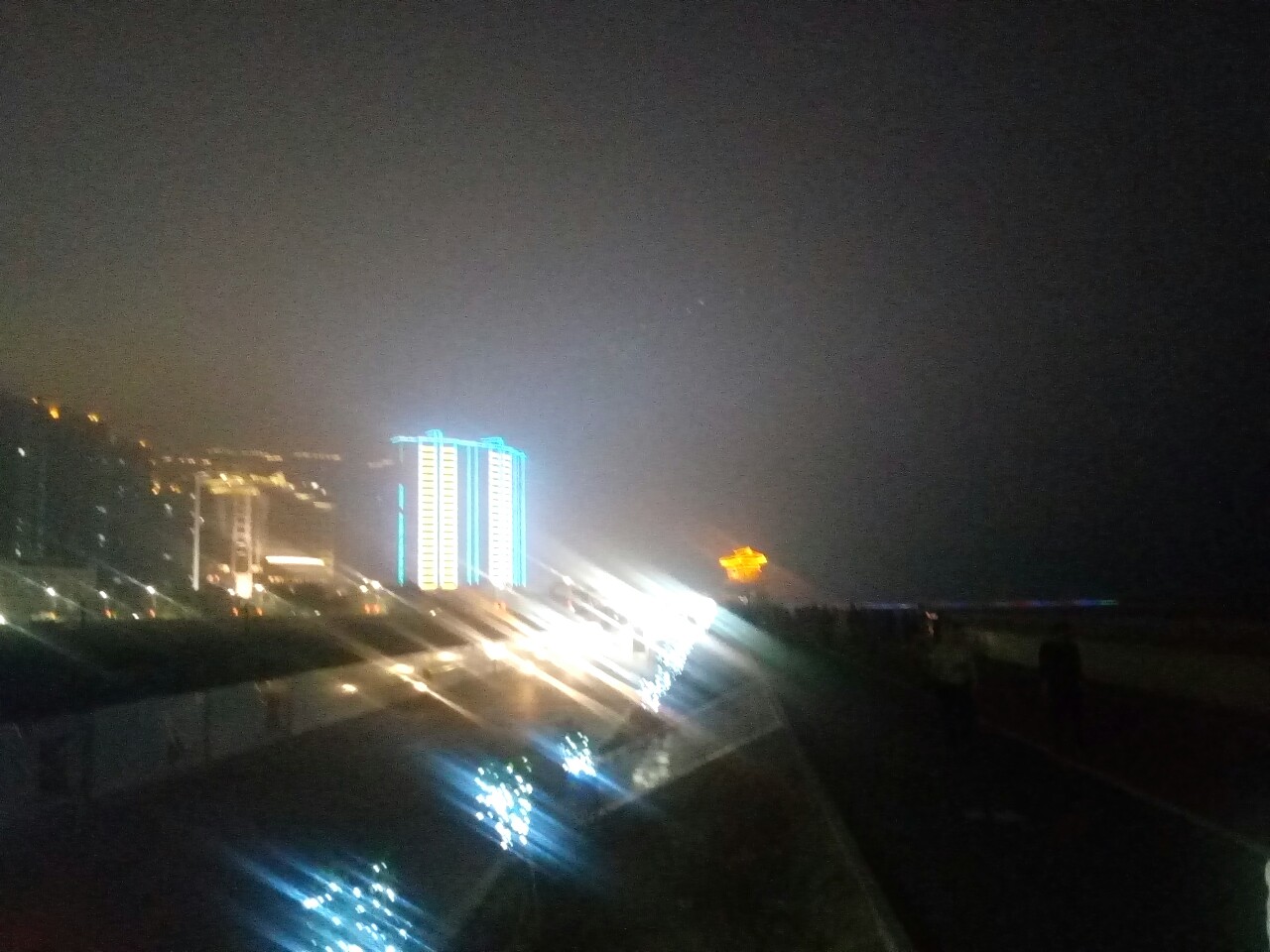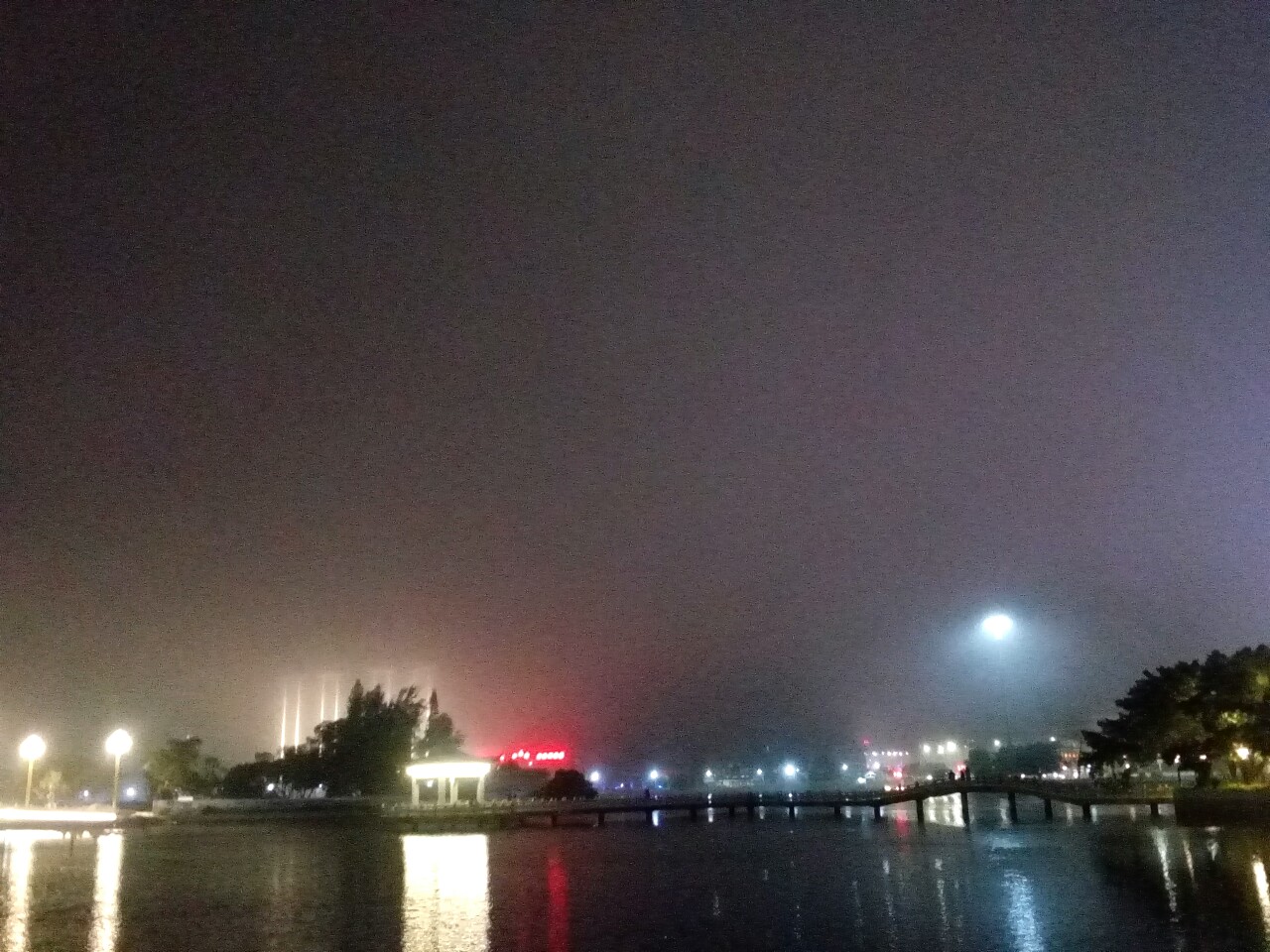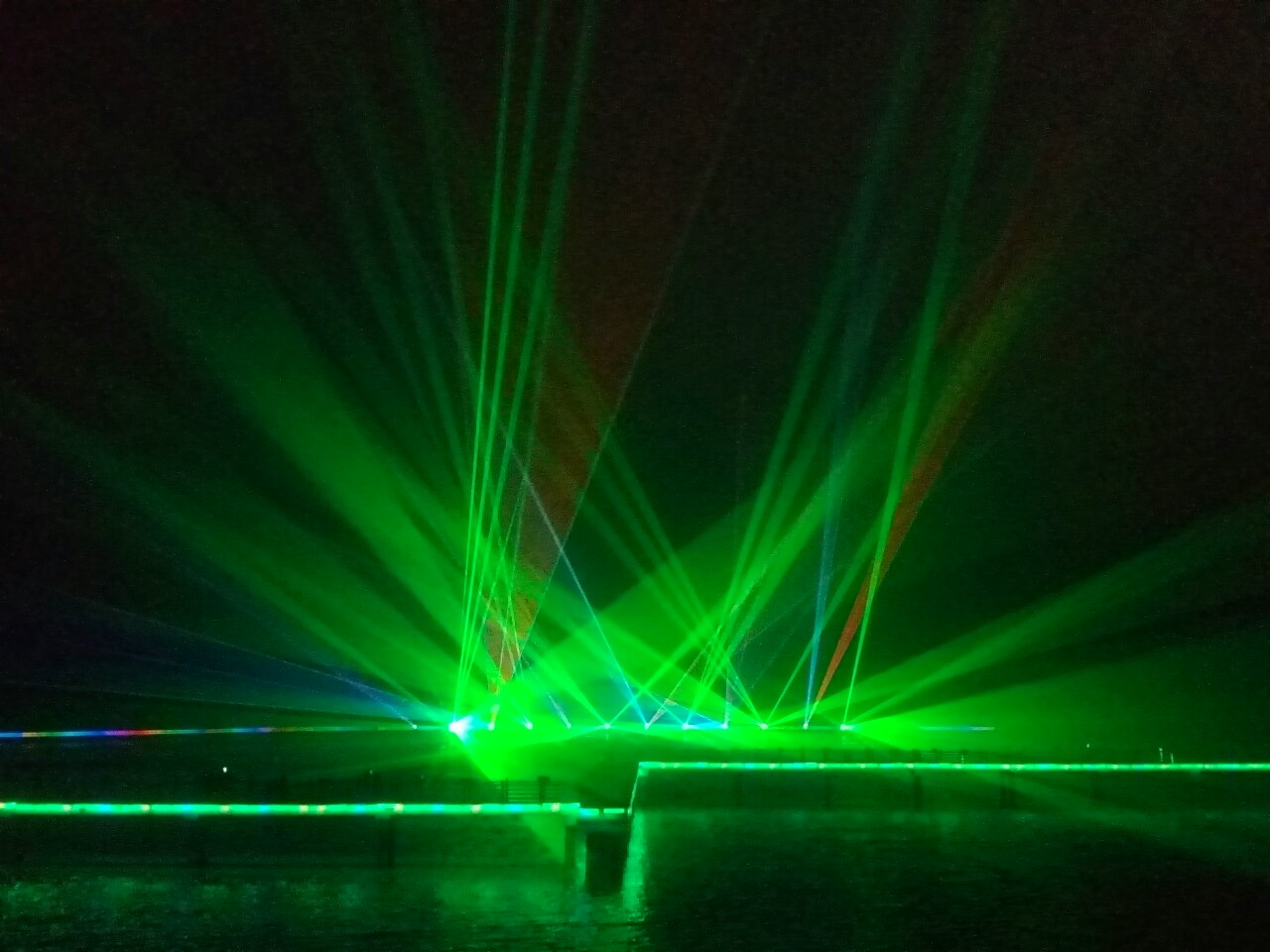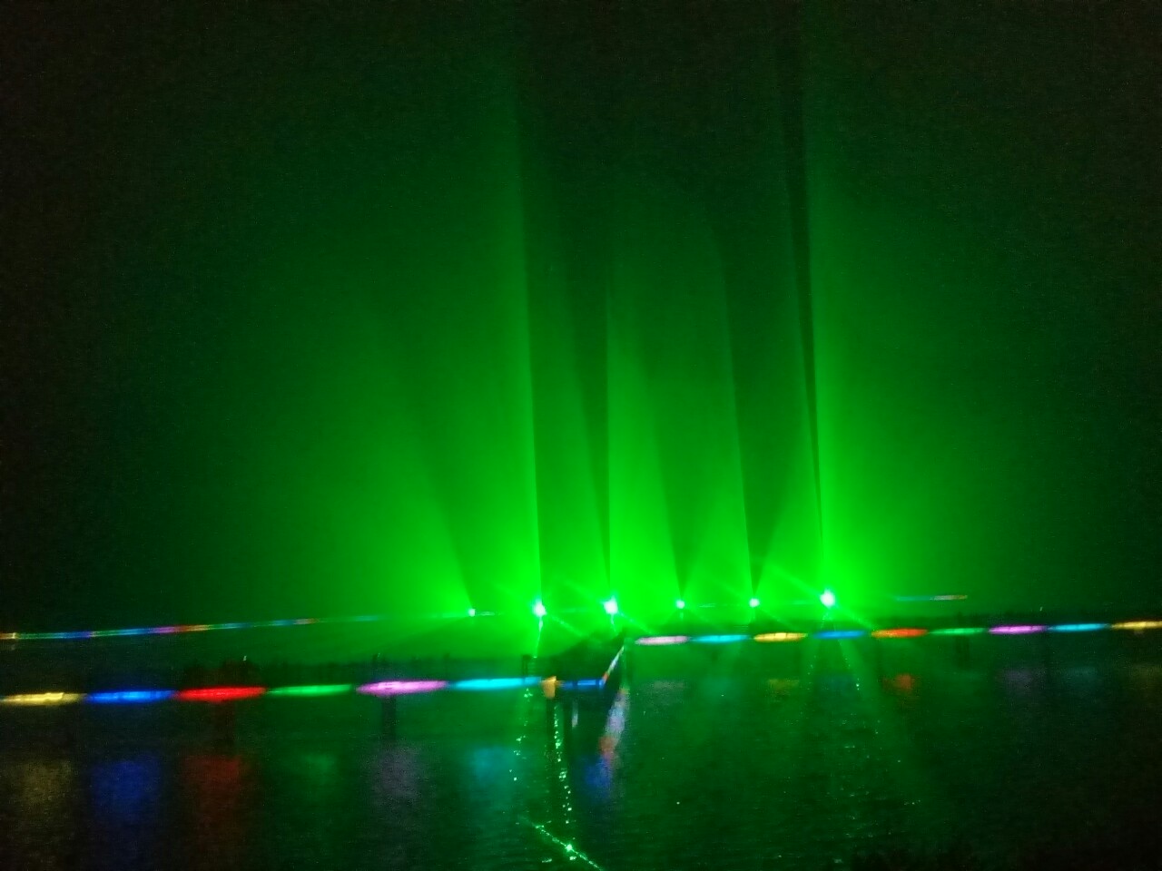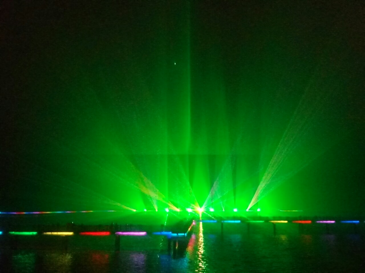 雾中镭射灯光秀应该好看得多,怎没想到呢?错过了。