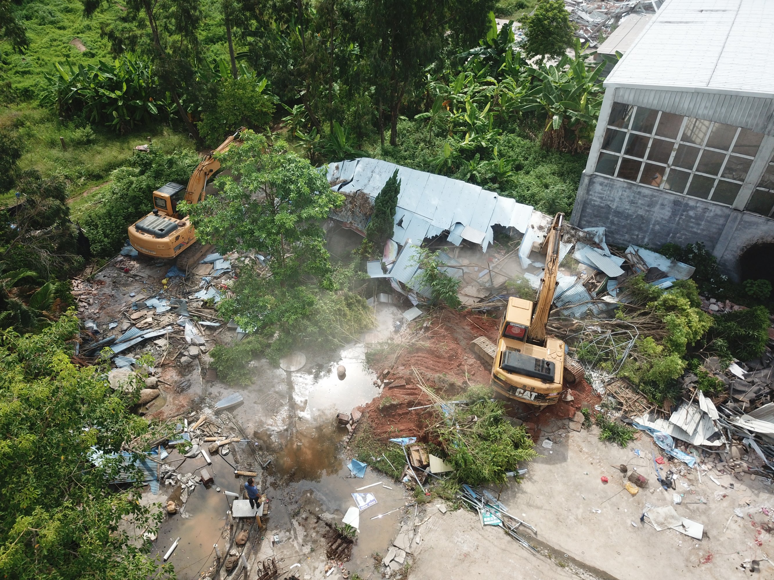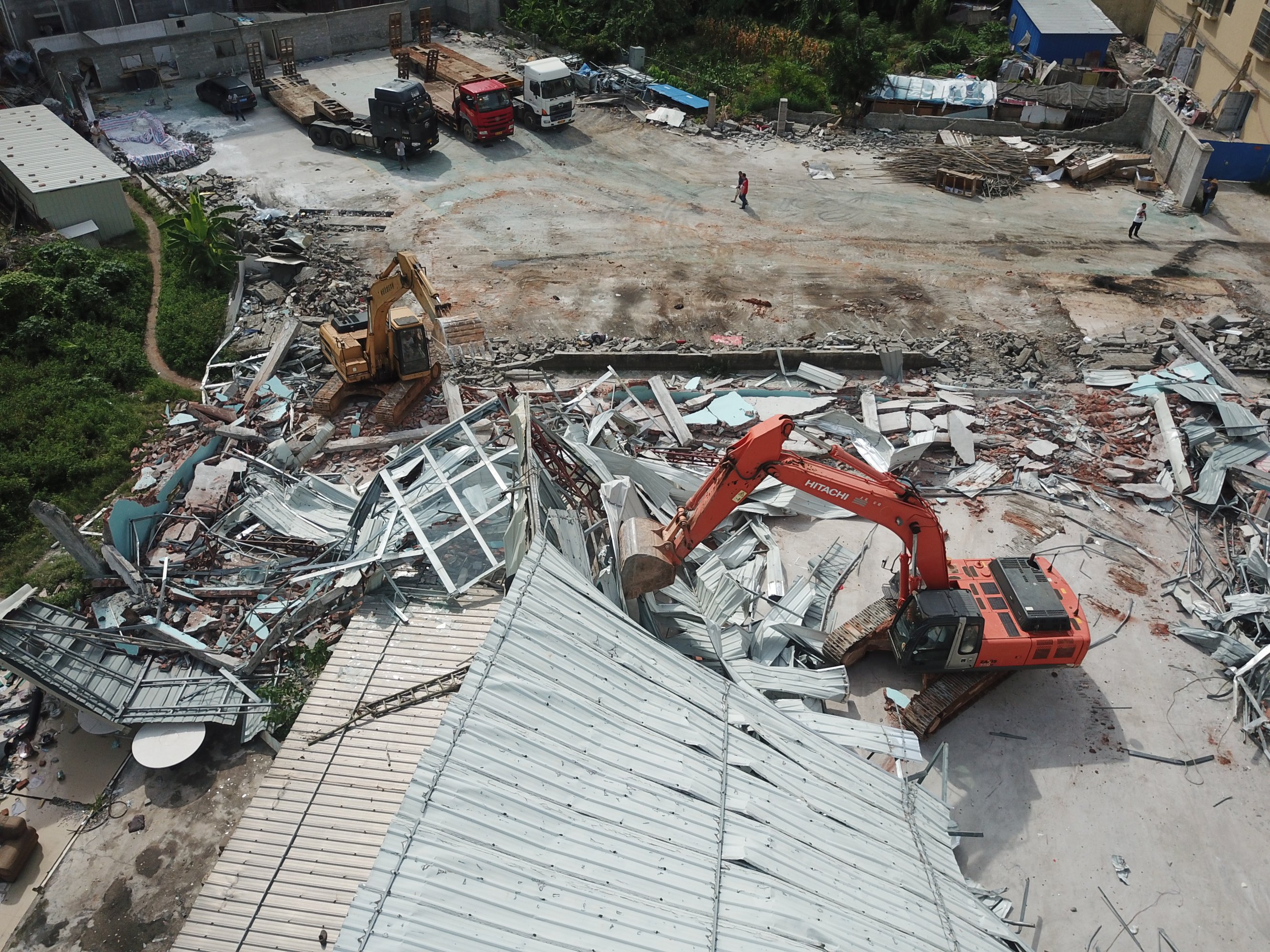 这次拆违对广隆岭村来讲意义重大,考虑到保障村民人身安全和拆违取证,我们除了地面跟踪拍摄以外并且采用四架大疆无人机全程高空同步监控拍摄。昨天分享了部分照片上来坛友表示看得不过瘾,那我就分享一些航拍图吧,关于人物和特殊事件的照片暂时不便公开,理解万岁!