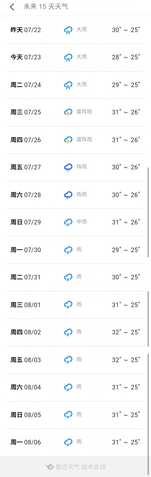 非正常人研究院 副教授 注册 2018-07-21 消息 2,033 反馈评分 332 点数 191 2018-07-23 #2 很不幸,能查到的未来15天都下雨 附件 S80723-18432388.jpg 102 KB · 查看: 384
