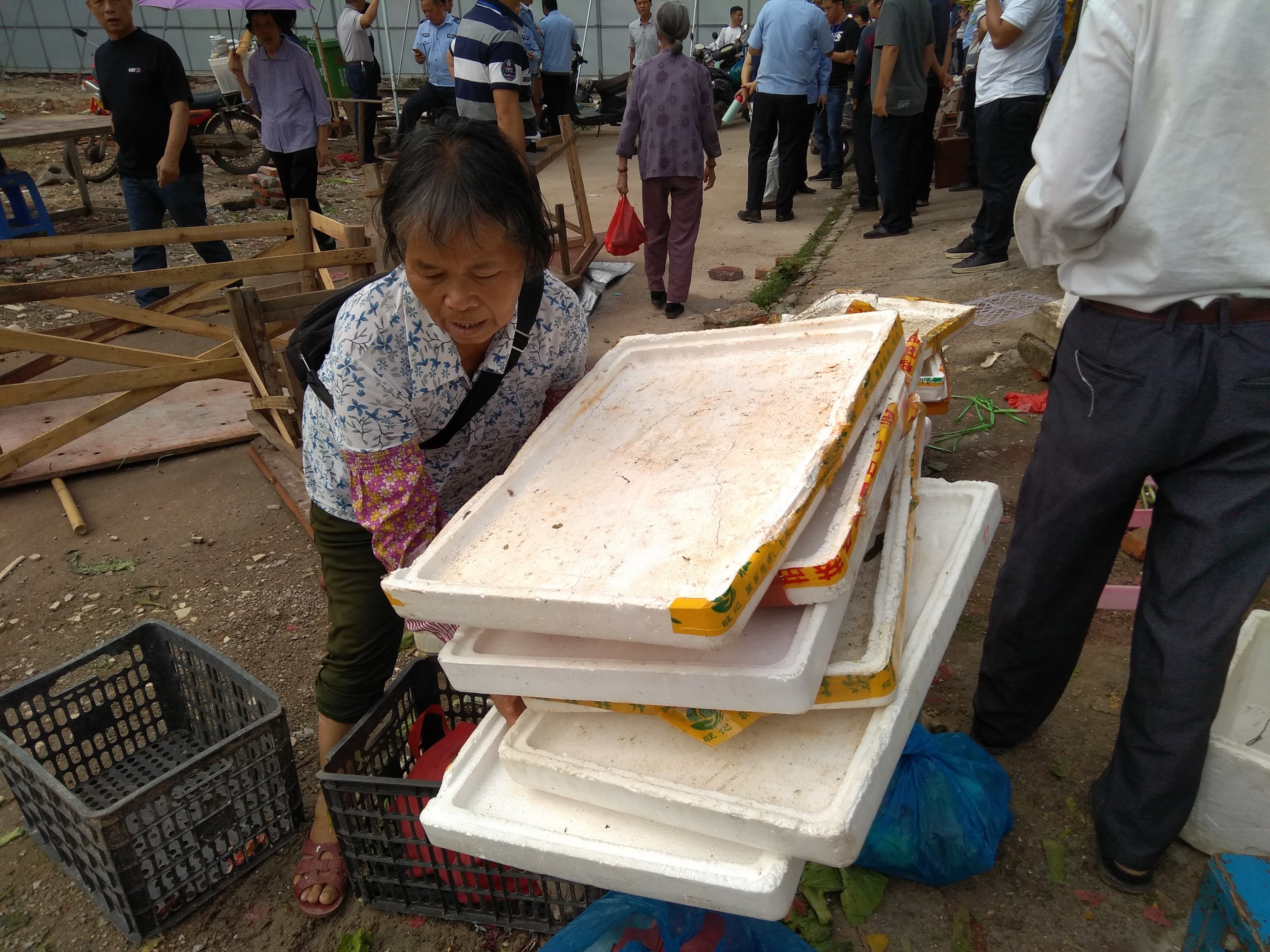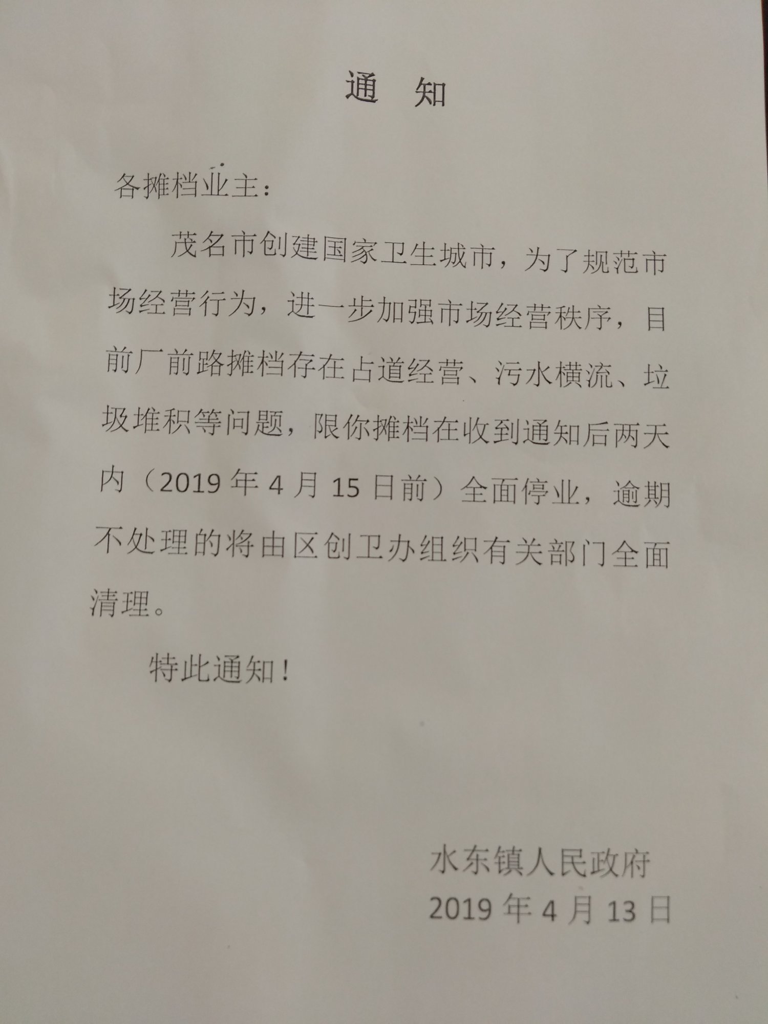 4月18日菜市场档主到区政府信访后,城市管理综合执法局4月23日下发信访事项受理通知书到档主们手中,事情不温不火又耗到现在,政府打算如何处理貌似没人知道,档主们每天提心吊胆做好游击战的准备。我有次买菜时询问那些档主,他们说被城管赶了之后确实少了一些人,散圩时间也更早了。以前是一个上午圩,现在早上10点几乎没人了。但是这个菜市场依然是全水东最多人流量的,因为散户多,流动摊档多,物美价廉,销售量也是非常高。如某鸡档老板说每天能卖50-60只,几个人忙不过来。某鱼档一个早上买三百余斤大头鱼,耕海妇女每天新鲜货供不应求,这是有些人在上排、咸水田等菜市租档一天都卖不出的量。生意比较好的部分人都是个例,大多人能来经营都能混到口饭吃。有的人经营了几十年的生意积累大量熟客,而周边人群的生活需求和追求便利不是没有道理的。