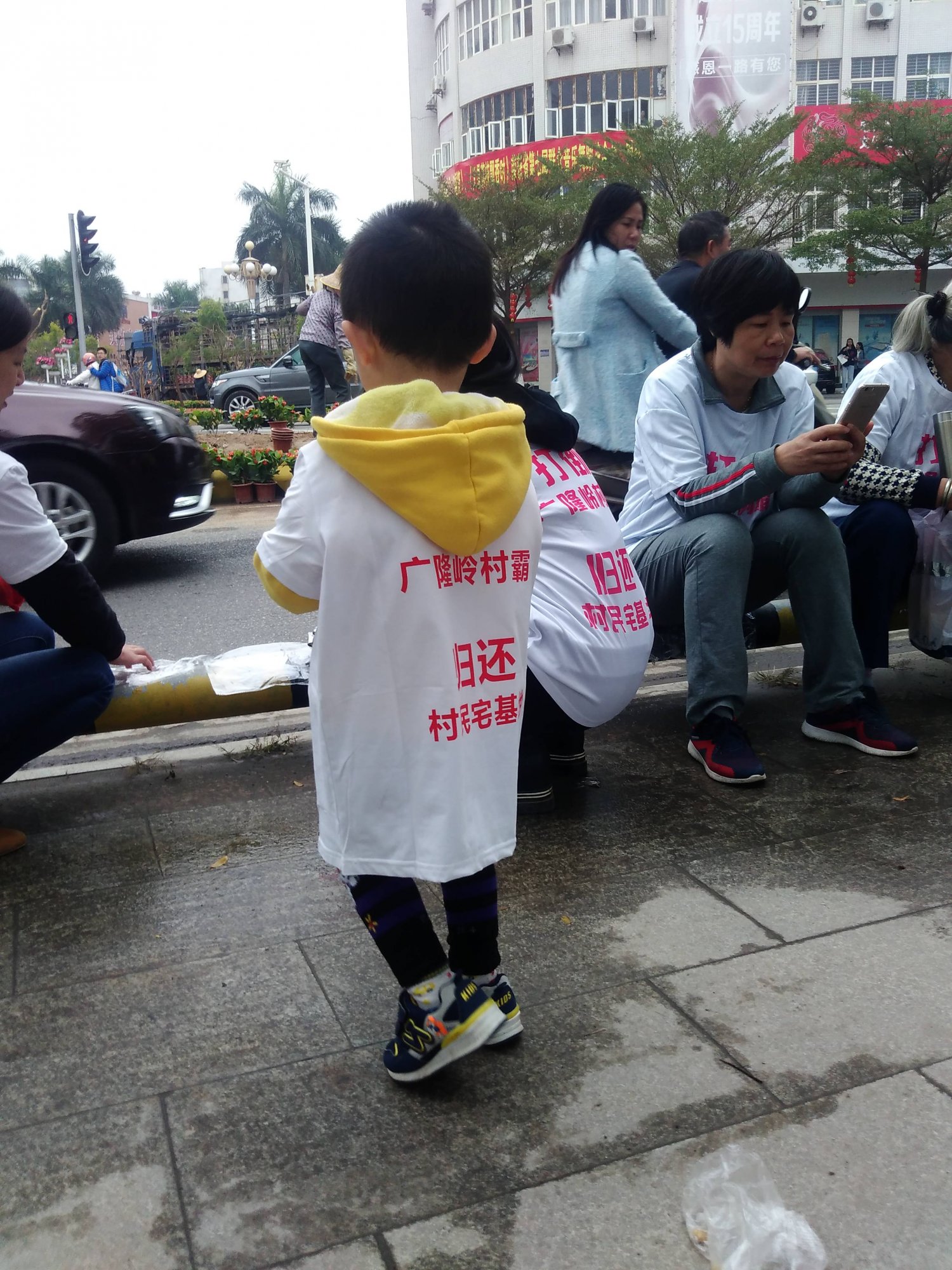 这是广隆岭人作出的艰难一步,也意味着大家撕破脸来场真情告白。广隆岭村全体村民首次到电白区政府静坐抗议,对于有关部门的处事方式和办事效率来讲,广隆岭村民非常不满意,多次忍让多次等待,我们一直支持政府工作却换来的是一次次的忽悠哄骗。拿回属于自己的土地村民看不到希望,老去的人更是死不瞑目。我个人也时刻牵挂在心头,生怕自己心血高顶不顺,无论村民在哪里抗议都是需要请假罢工参与的,村里已经很贫穷还要凑经费维权打击村霸,实在消耗不起这样的折磨。没有收入还要付出金钱对个别家庭是严重透支。村民迫切想要得到政府一个有力说法,才有不约而同的一致想法,干脆就到区政府。好在区政府就在自家门前不远,从村里徒步过去也就1里多路,老人们走的动都要去,走不动的也想要搭车去。这天正好碰上一个妇女在维权,她说是每天都拿着凳子到区政府信访等领导出现,看她像被领导冷落多次的模样,她的情绪非常激动,她的故事听着也十分凄惨,她更有勇气对着几十特警和政委发泄骂得狗血淋头。森高啊叔踩着凤凰单车经过表示支持,说着说着热泪盈眶,好事者路过频频停车拍照录像。静坐许久华区长接见村民代表,听他们回来反映说政府表示2月5号左右可拆除……
