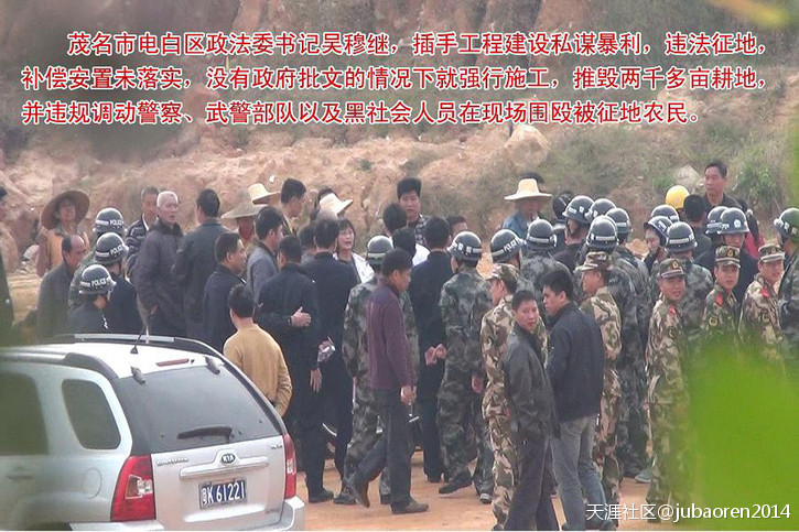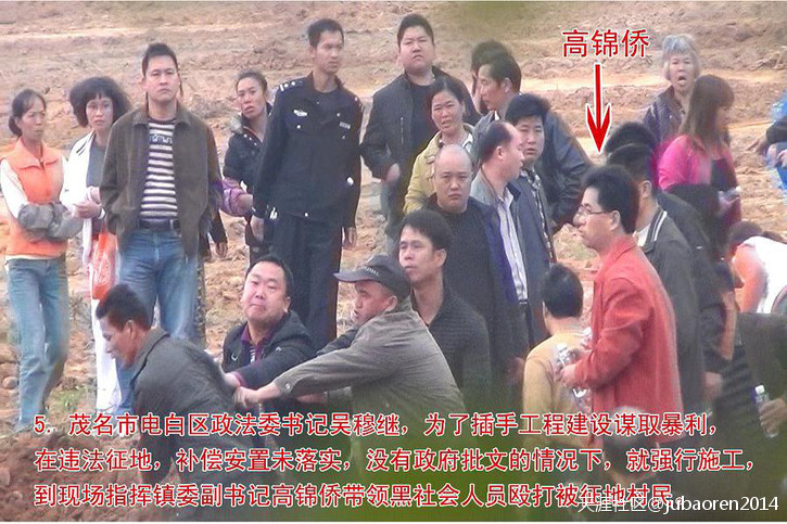 五、被举报人吴穆继,利用其惯用且有效的手法,与坡心镇牛六架村委会书记兼主任陈锐(地方都称其“千万哥”)勾结,拉拢村长和其他白粉头、赌博头、黑社会非法插手介入没有经村民推选的假村民代表,暗箱操作,违法强征牛六架村一千多亩土地,征收面积与事实不符,严重缩水,吴穆继利用公、检、法特权和黑社会势力随意殴打被征地的村民;陈锐利用手上的公权胡作非为,贪污风暴在此盛行却没人问津,原由就是受被举报人吴穆继包庇和保护。另外,2014年3月基层换届选举,牛六架村委会书记兼主任陈锐为了维护其贪污不受干预和怕被揭发,利用被举报人吴穆继为后盾,吴穆继动用300多名警察进村威胁选民的选举事项,将落选村委会书记兼主任陈锐的选票强行作弊,参假了两个票箱共902条票清一色同一字体笔迹的选票进行为陈锐作弊。吴穆继一手遮天,村民失去公平、公开、公正的选举,众人目睹此过程,广大人民群众无可无奈说:“以权压法,官压一切”。被举报人吴穆继显然已经成了“地方老虎”的事实。