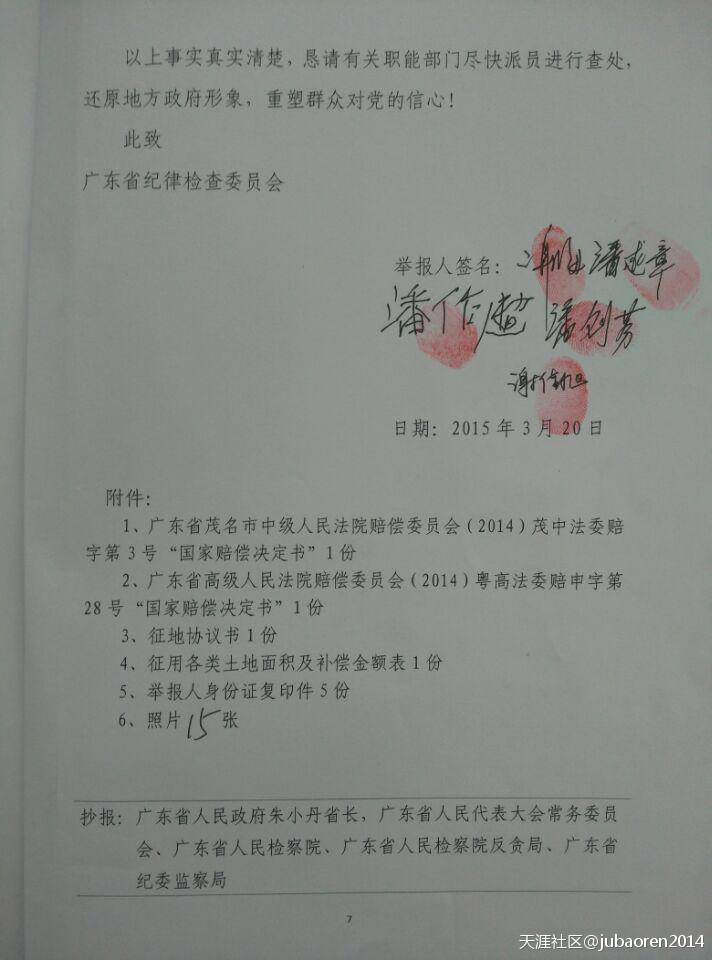 举报人签名:谢海、潘述章、谢佳旭、潘作超、潘创芬