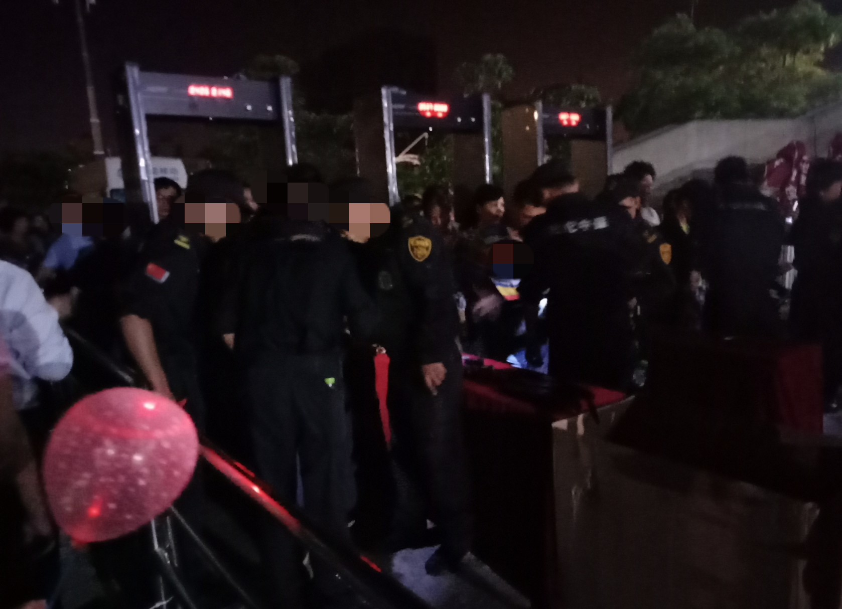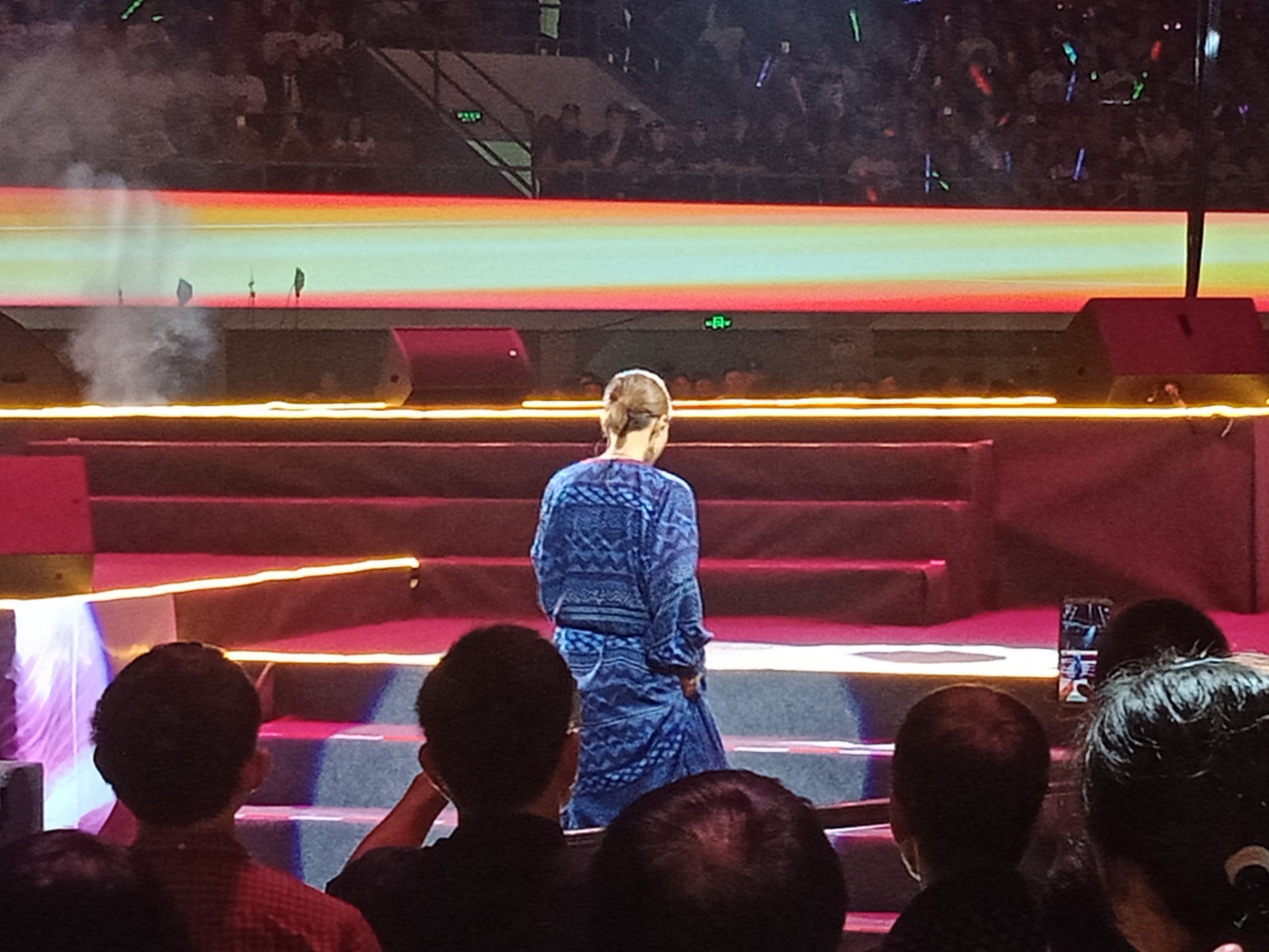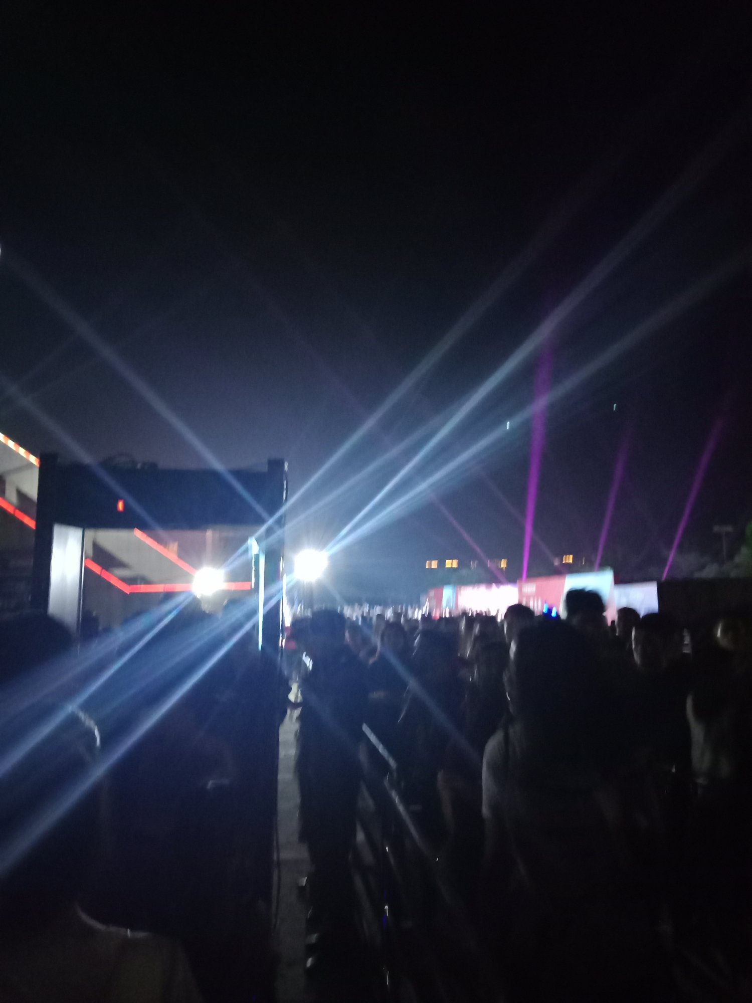 再由邓颖芝出场~先劲爆歌~这位还行,走下台与群众握手互动~好多安保围住~好多人冲向前面与其握手~近距目绪~