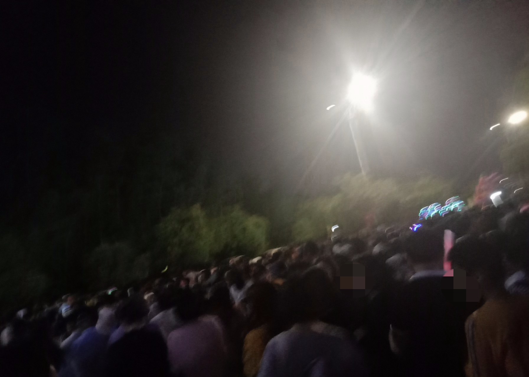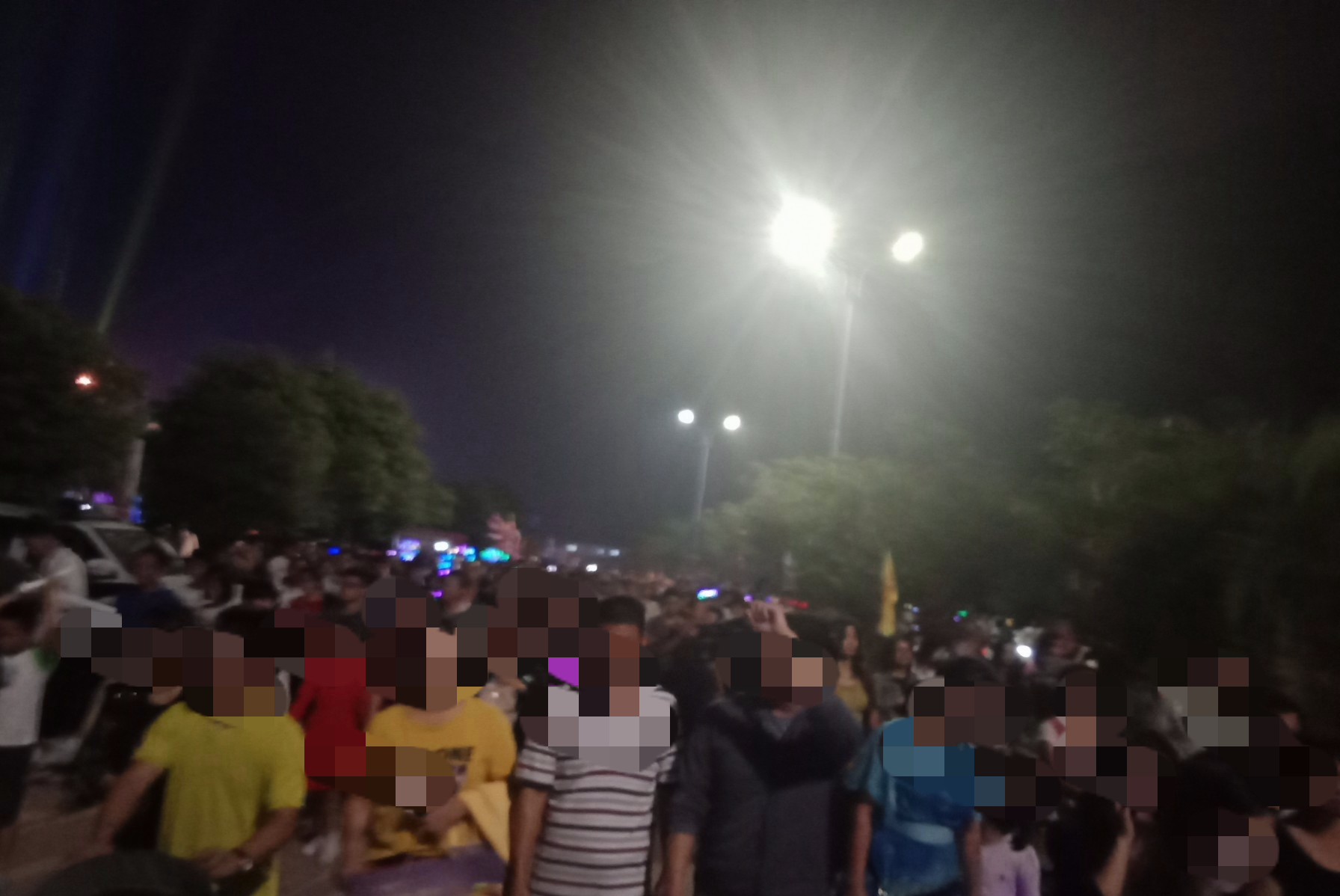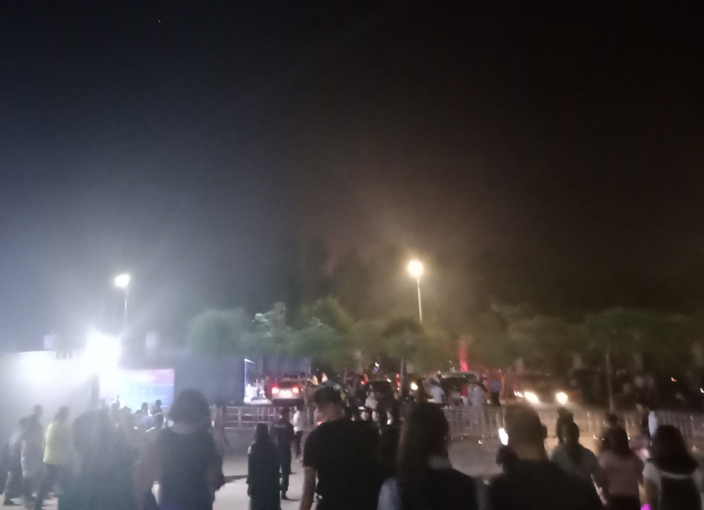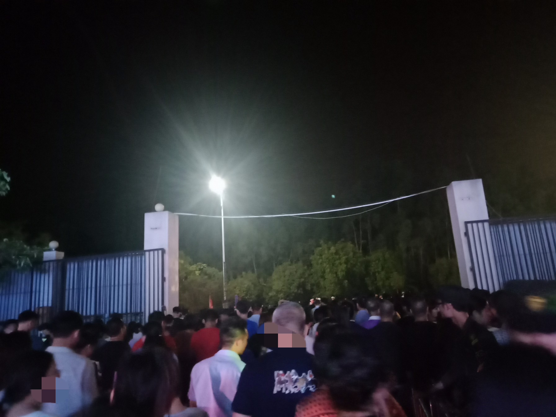 再由邓颖芝出场~先劲爆歌~这位还行,走下台与群众握手互动~好多安保围住~好多人冲向前面与其握手~近距目绪~