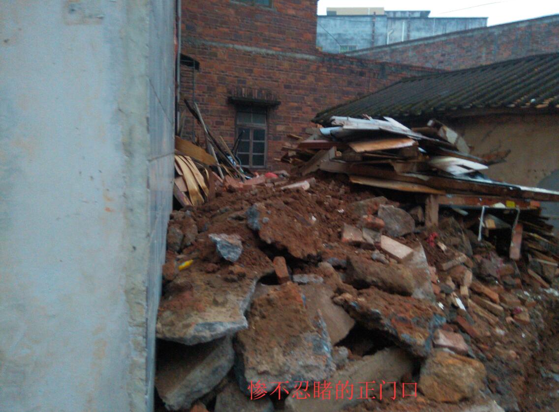 倪水候为了达到目的不择手段,暴力破坏我家土地证红线内墙角、挖开我家房屋护墙角,在我家门口四周砌砖堆积垃圾杂物,白蚁腐蚀门窗。这五年来,我也是被逼的没有办法了!多次向电白区区委书记、电白区信访部门、水东镇相关部门反映过的我家门口被堵、墙角被挖、房子遭到破坏,邻居强行占用公用通道违建扩建的事实,迟迟得不到解决。