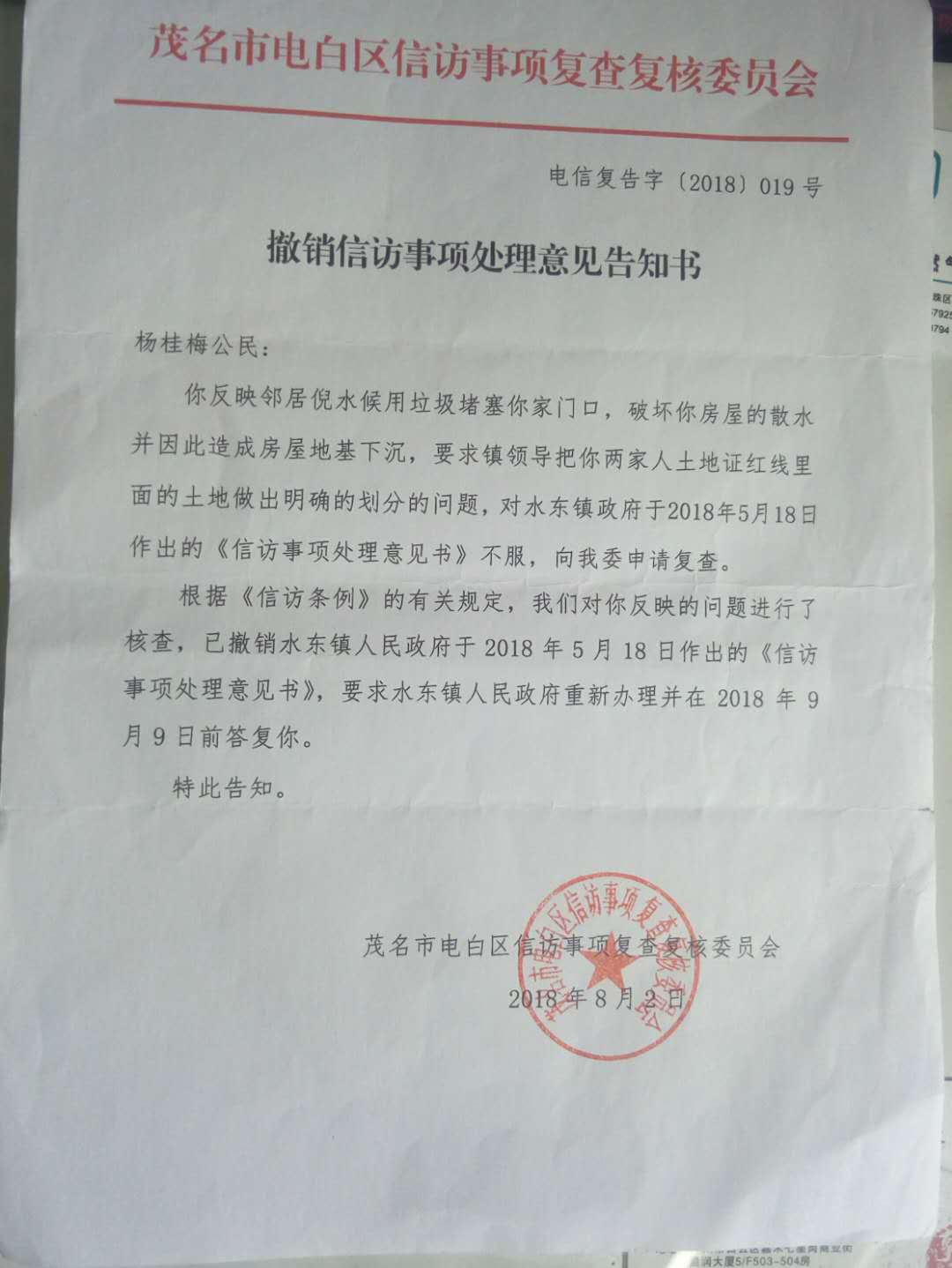 9.电白区撤销信访事项处理意见告知书要求求水东镇重新办理.jpg