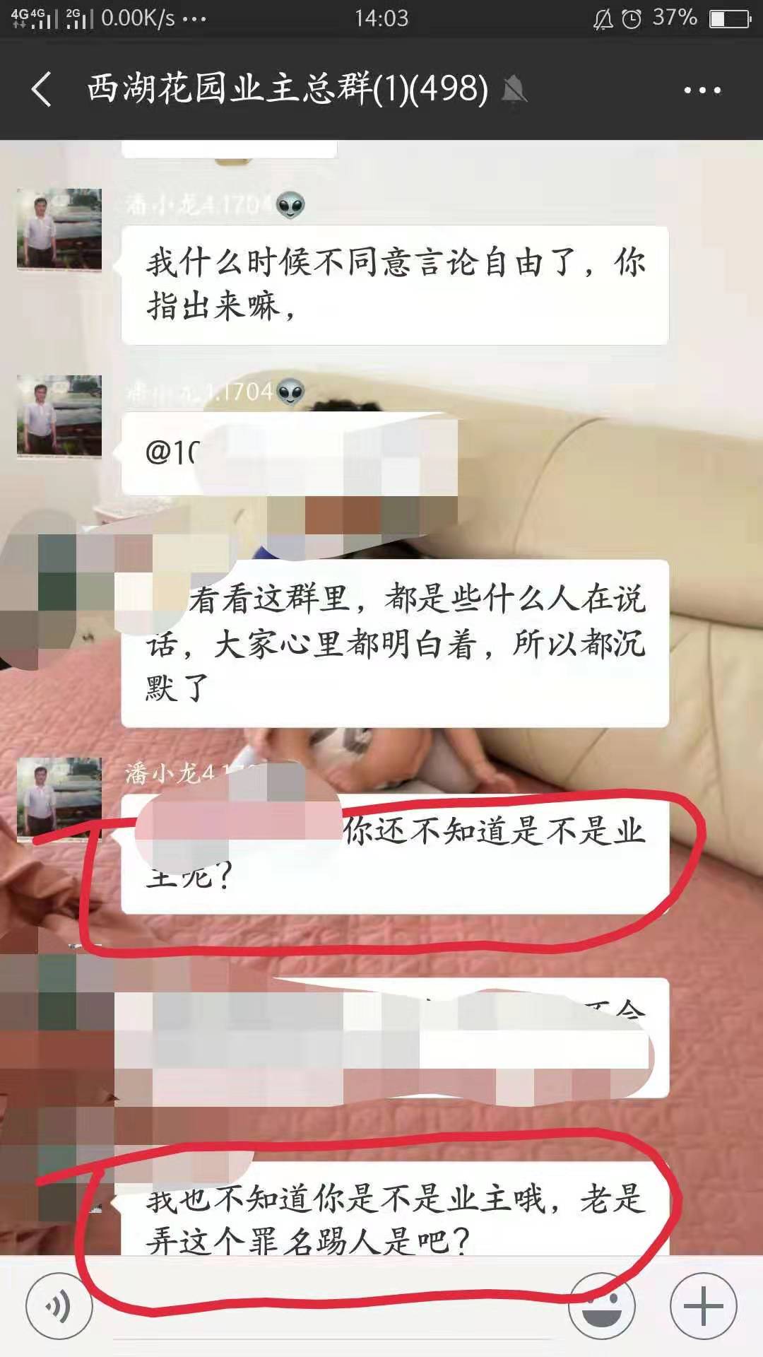 历经周转,走访西湖花园两大微信群,分别从假冒业主群与正义业主群了解到,假冒业主群主潘x良,自称龙哥,别称“越南龙”,或称“垃圾龙”,现又新增了一个称号“弱智或智障人士”,在短短数天内,先撒掉群主,又急忙中上阵群主,细思极恐,真相实在引发人深思。