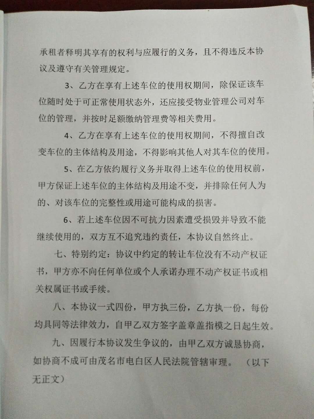 说到租赁车位,很多开发商会混淆租赁和购买的概念。租赁一般是二十年左右,购买则是永久使用权,签署购买合同的时候一定要看清你的使用权是多久,看看开发商有没有篡改使用年限。