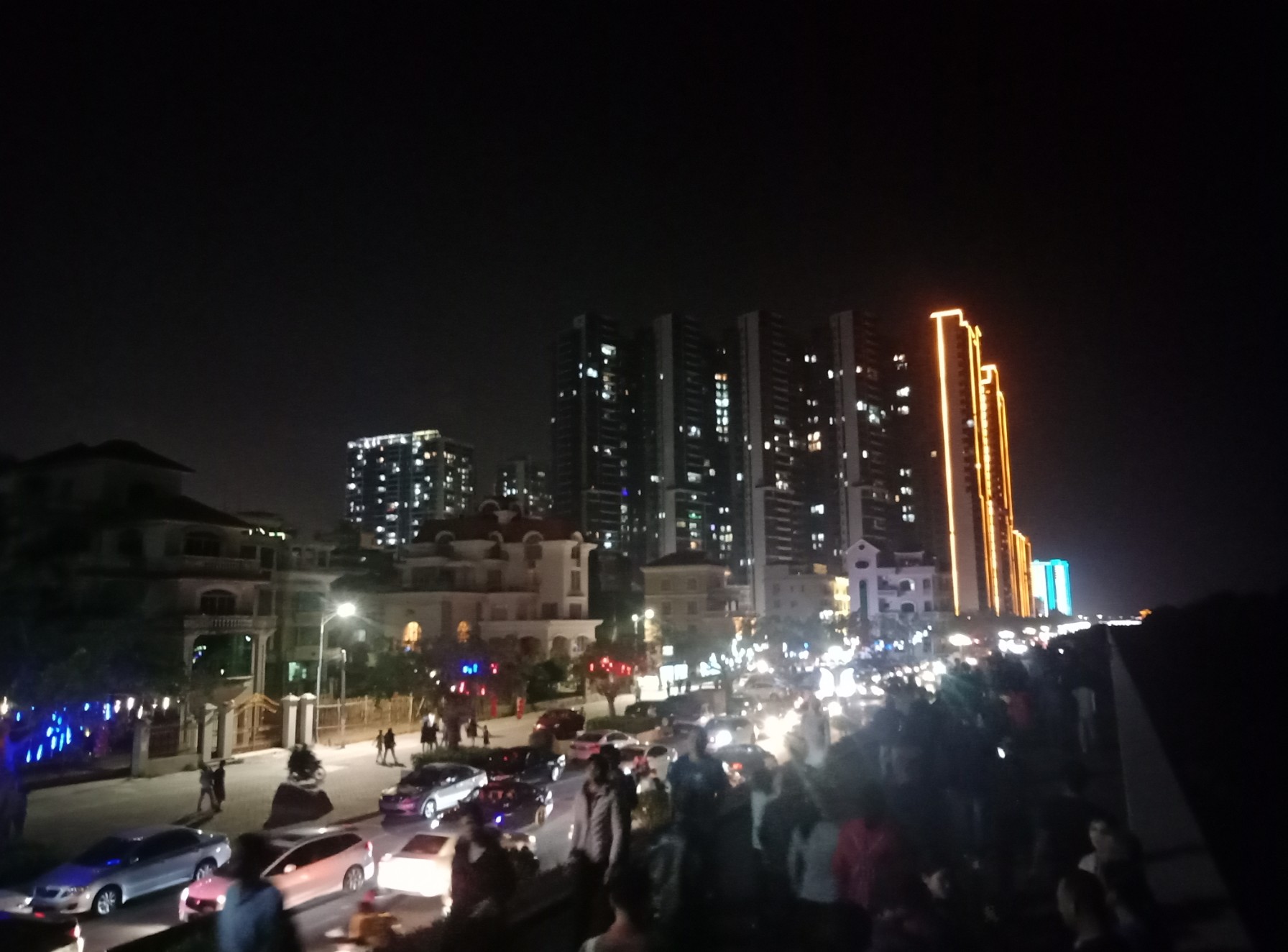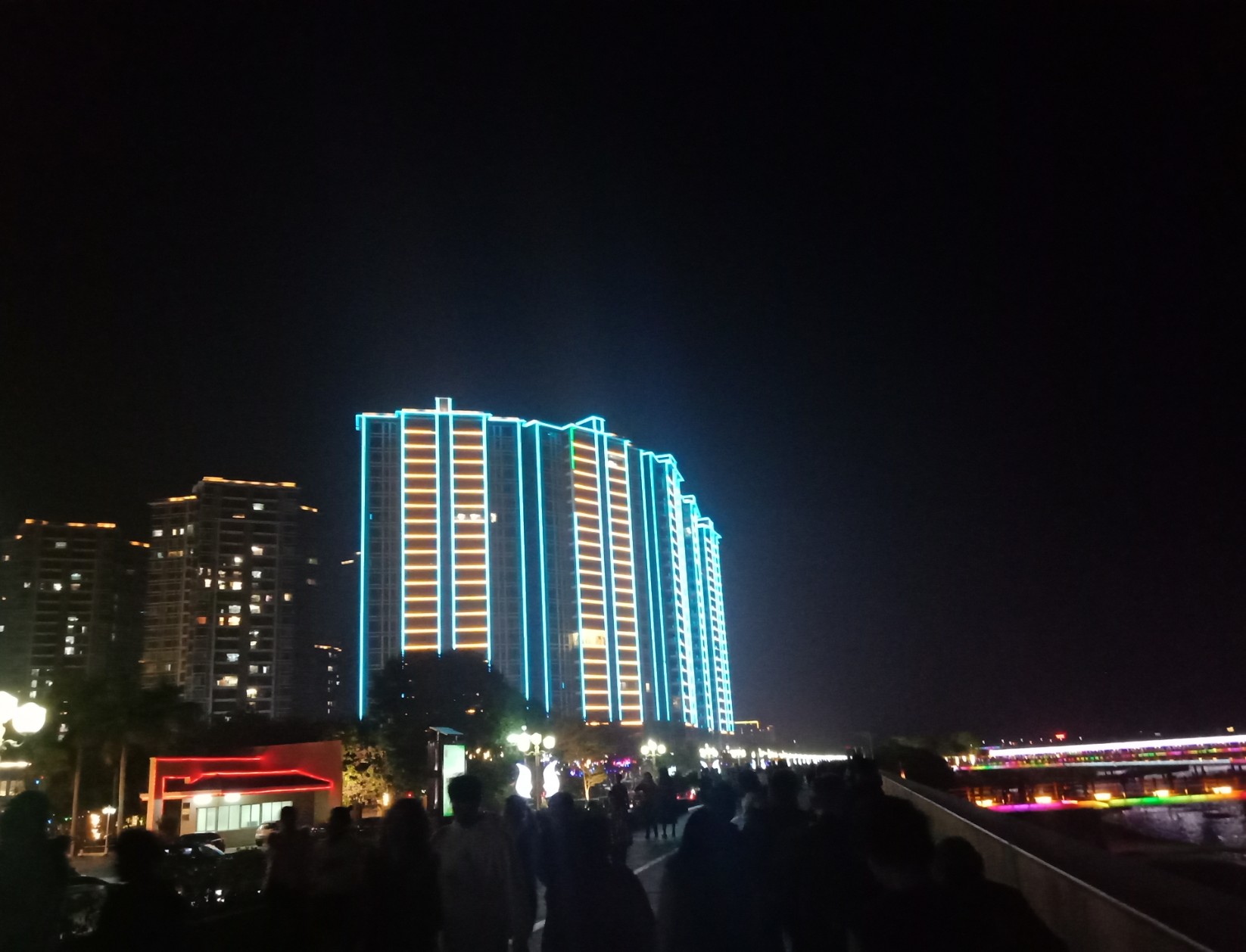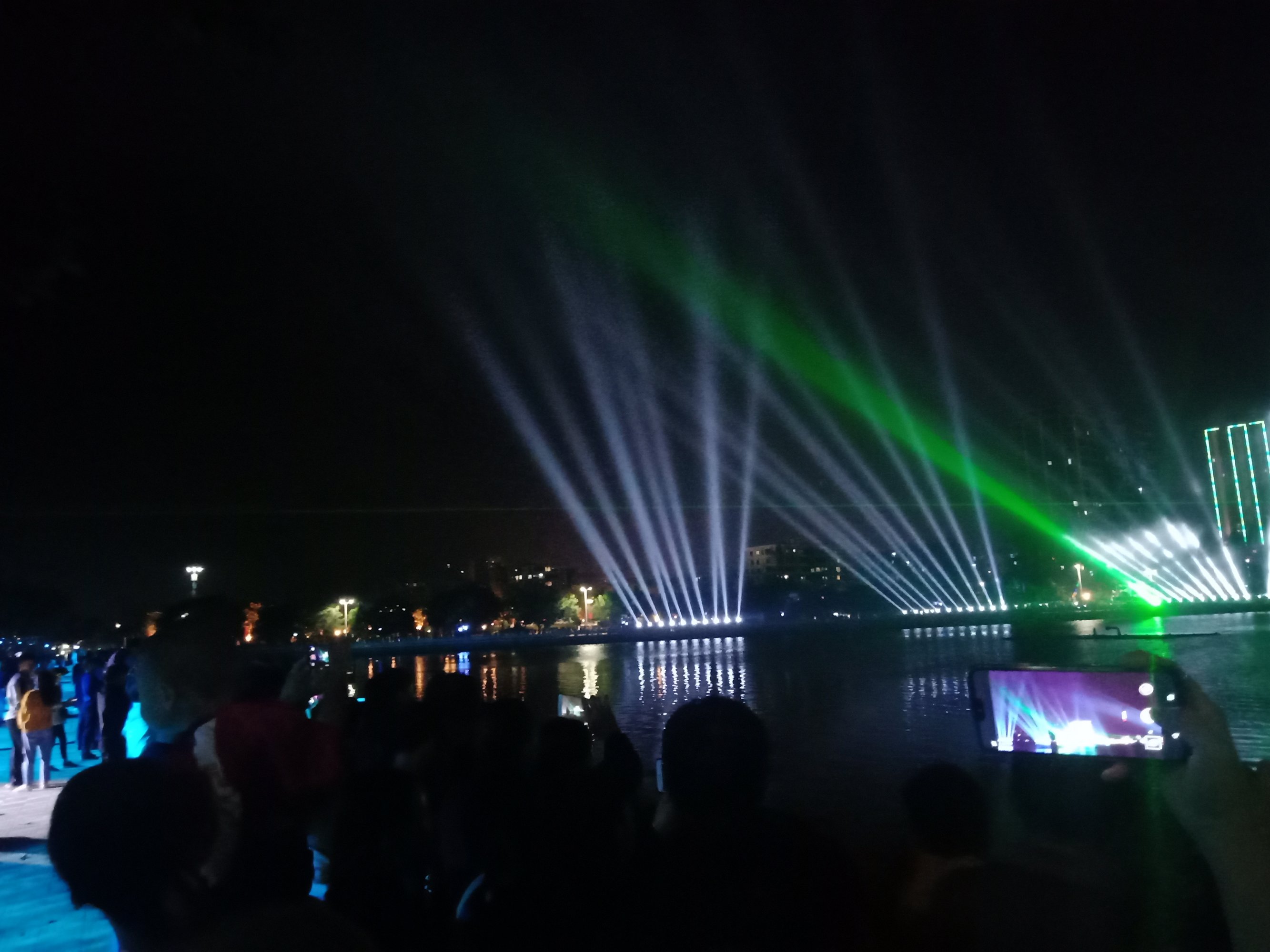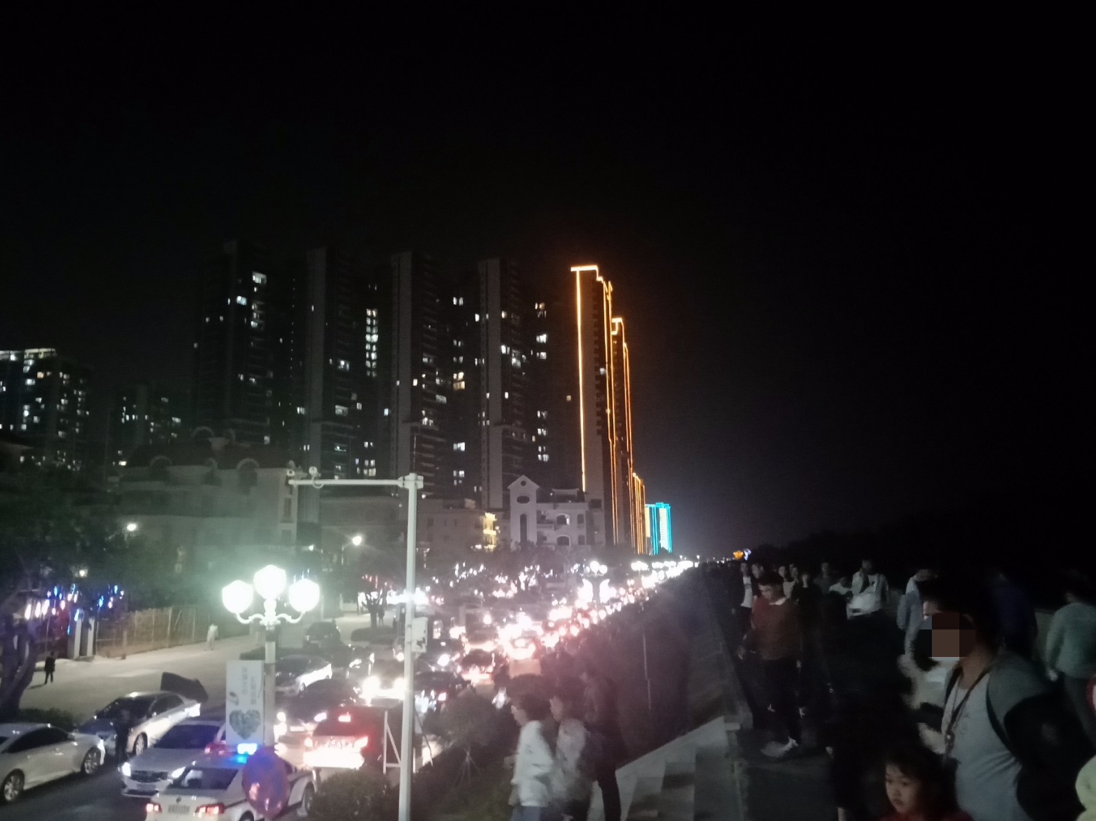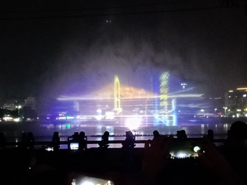 今晚特意又去吸吸,貌似还有些人婆知?围住湖边或坐在石椅上,而海堤绿道上也有好几帮人(有些带着老人小孩~),坐在石阶上,人也不间断来回,而该路段车辆也不间断(诂有些开车过来吧?)~,不过嘛平常那带也有好些人在徒步散步等,瓦也以为他她们徒散步的,后见他她们久久不离去,而当时时间也过了开场时间段,后来走近听下他她之间所言,才知是来看这的,其实大部分人貌似已知晓活动时间,况且各报到各媒体微信等也有传知吧~况且那一带都有告示等等~,再过后,瓦就跟他她们说下:春节期间是年初一至年初六开灯光秀,而过后,如无设备故障或天气或其它主观客欢原因等,可能就每个星期五与六晚开机,而时间也应与春节期一样或其它吧~(其实我对他她说的,并没有本贴所描的这么整洁,只简单告知下他她而己~并加多一句:反正还早,就驾车或徒步过栈道那边走走逛逛,(不过今天今晚突然有点冷,风有点大,特海堤边,要注意保暖哦~这些是心想的没有跟他她们说的),看他她装束衣着也是有备而来的~