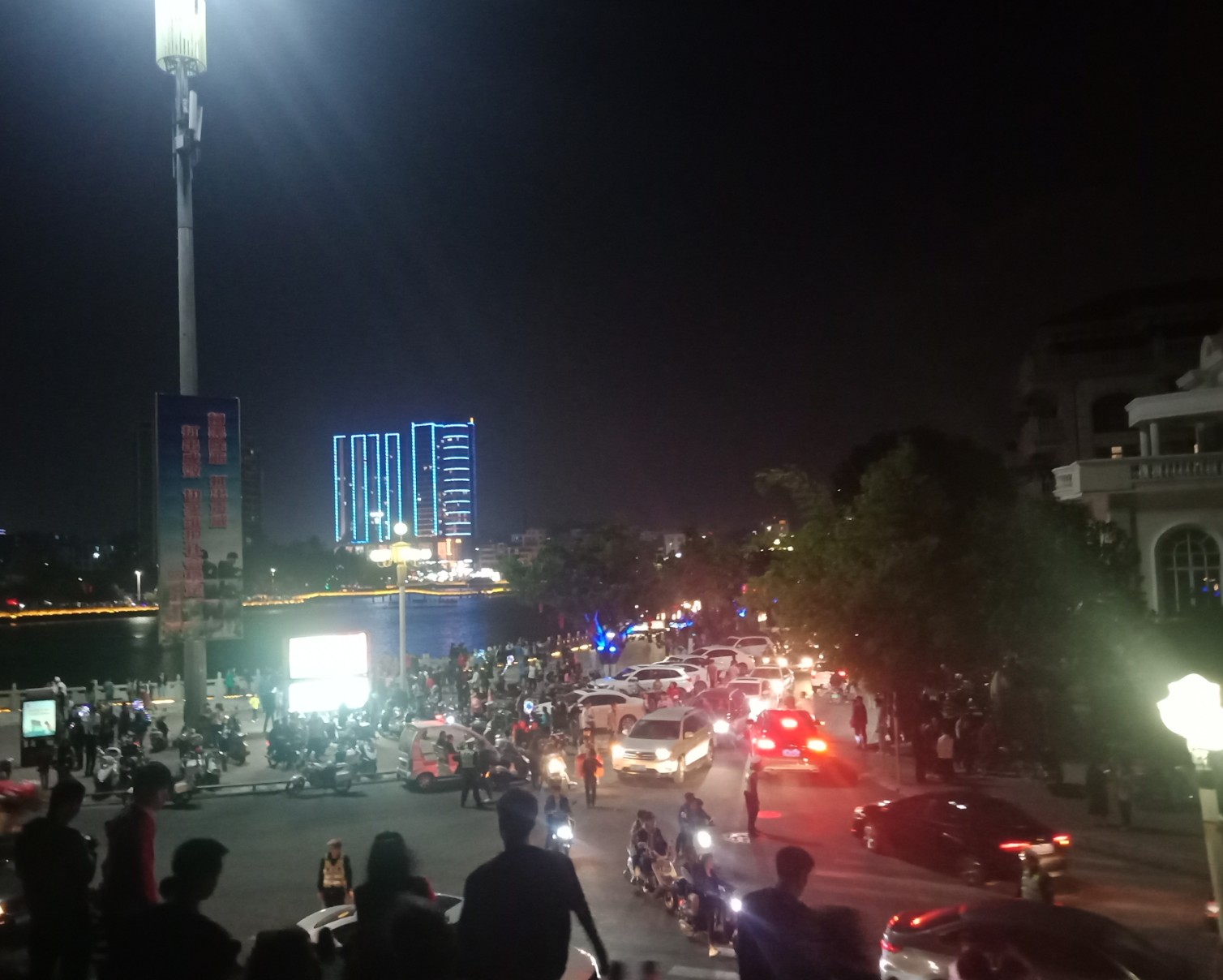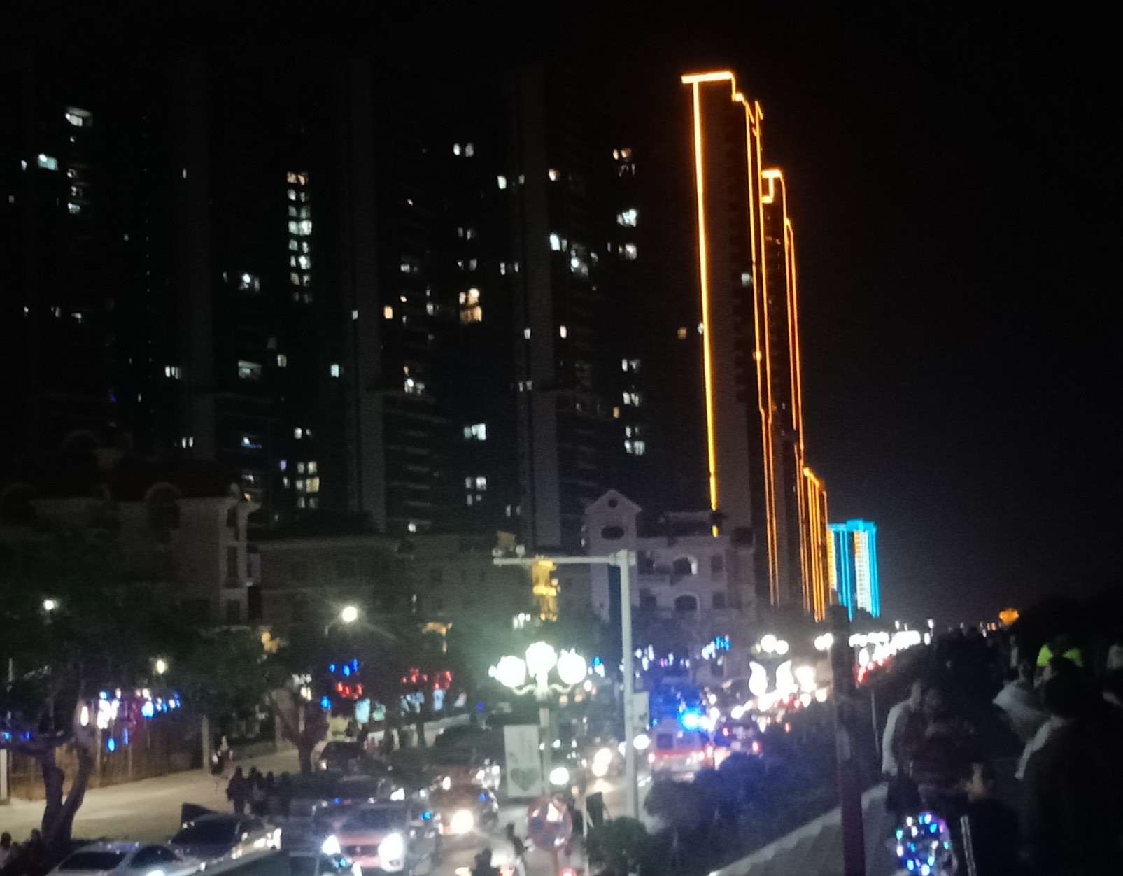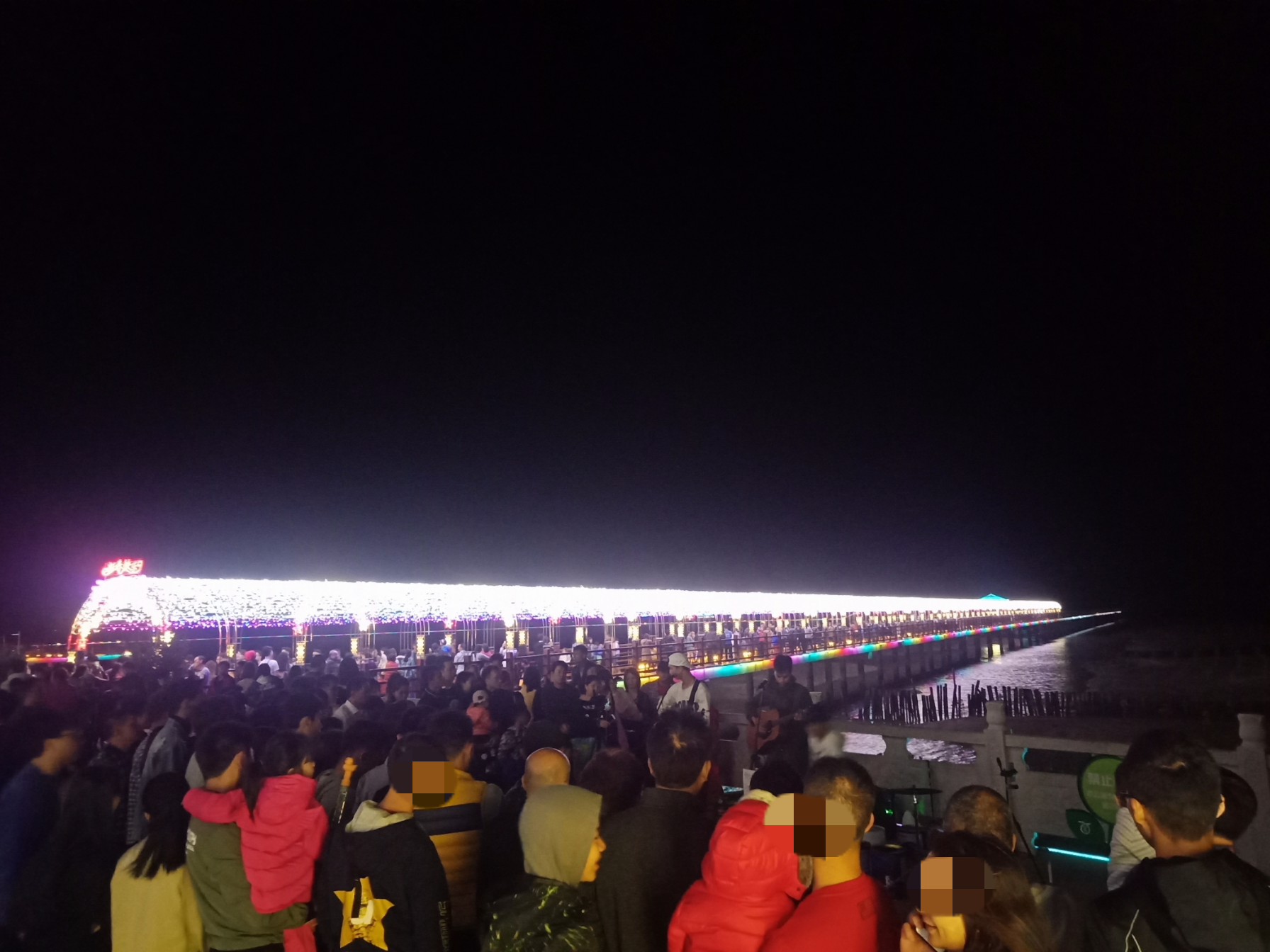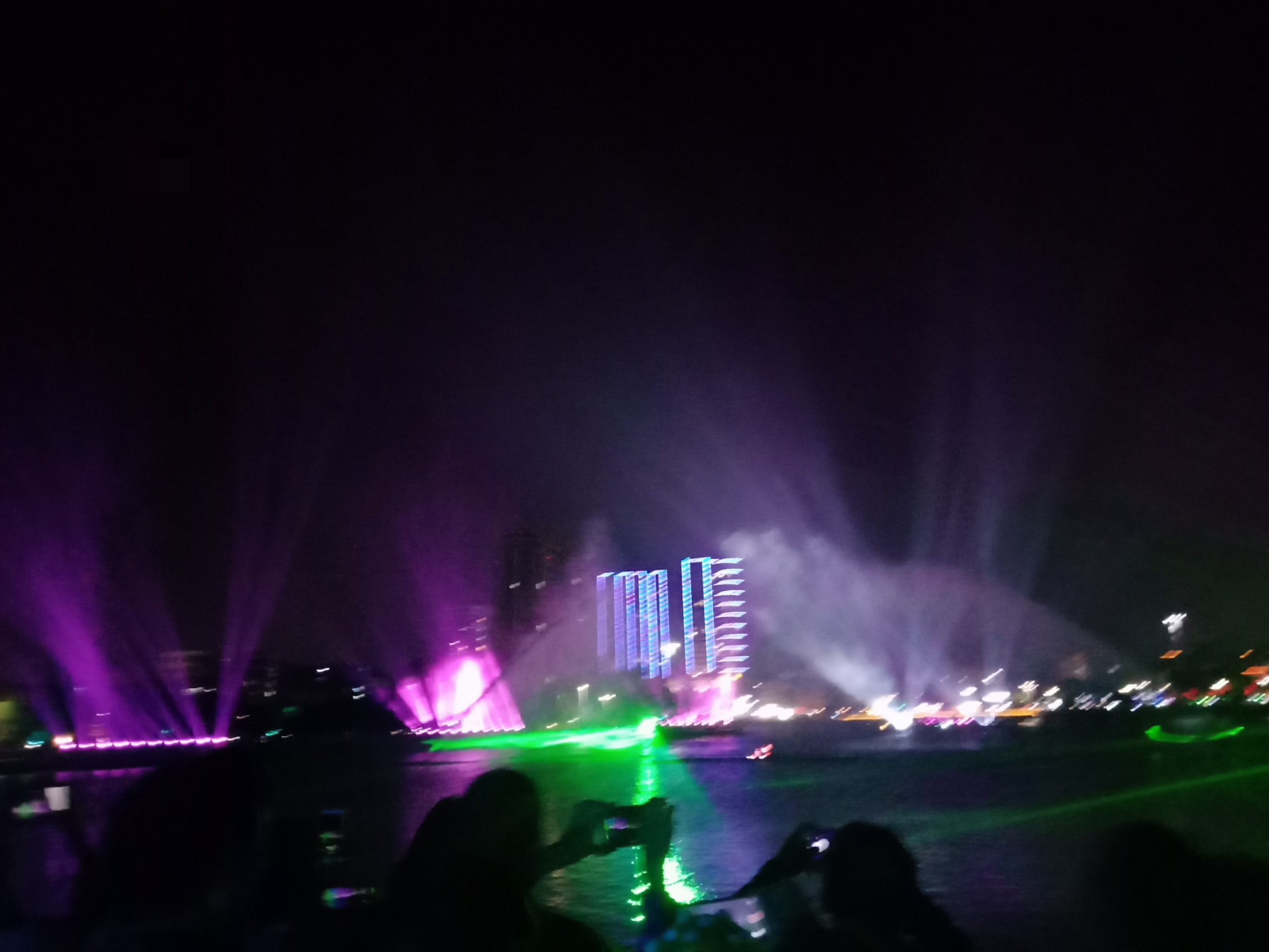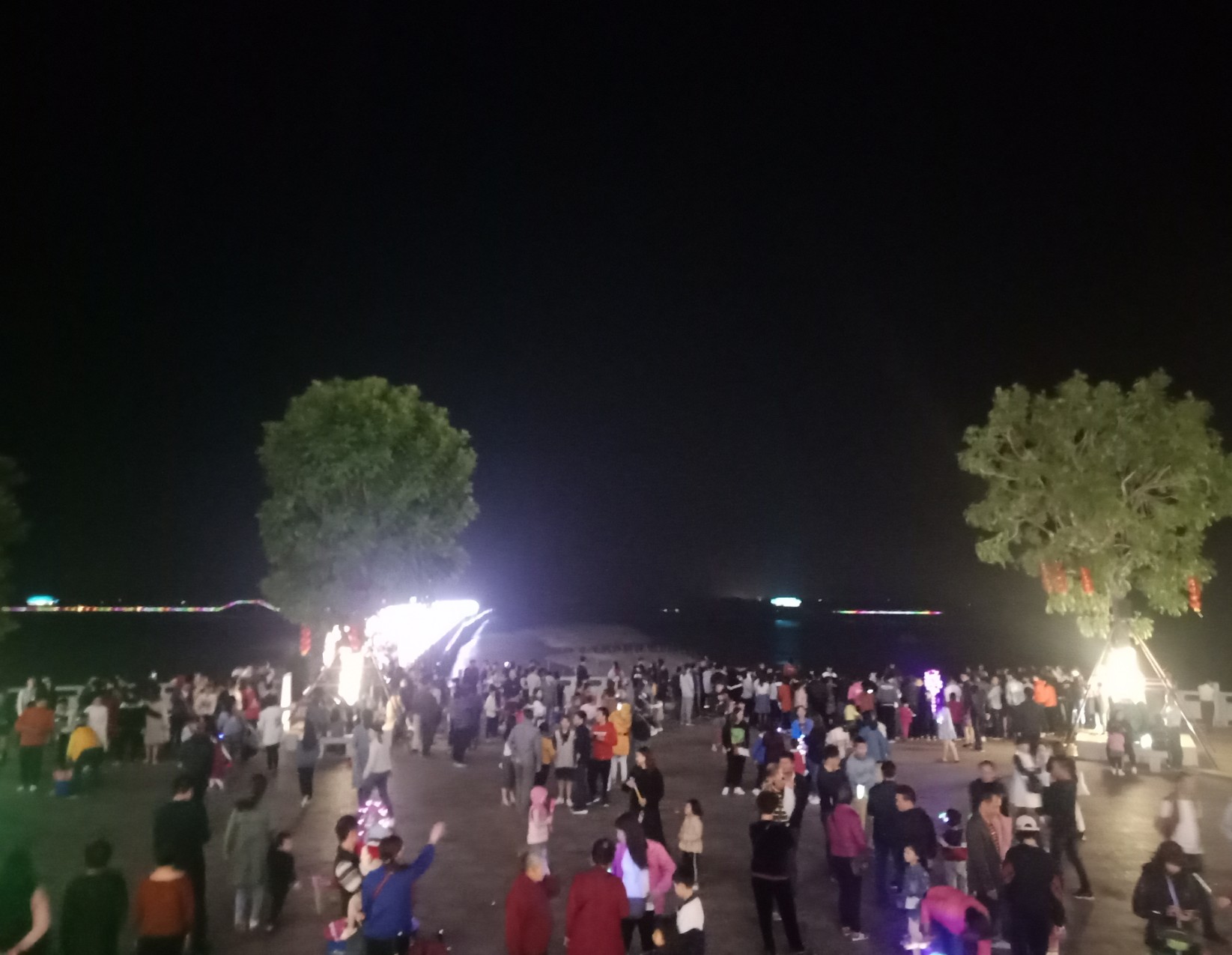 今晚特意又去吸吸,貌似还有些人婆知?围住湖边或坐在石椅上,而海堤绿道上也有好几帮人(有些带着老人小孩~),坐在石阶上,人也不间断来回,而该路段车辆也不间断(诂有些开车过来吧?)~,不过嘛平常那带也有好些人在徒步散步等,瓦也以为他她们徒散步的,后见他她们久久不离去,而当时时间也过了开场时间段,后来走近听下他她之间所言,才知是来看这的,其实大部分人貌似已知晓活动时间,况且各报到各媒体微信等也有传知吧~况且那一带都有告示等等~,再过后,瓦就跟他她们说下:春节期间是年初一至年初六开灯光秀,而过后,如无设备故障或天气或其它主观客欢原因等,可能就每个星期五与六晚开机,而时间也应与春节期一样或其它吧~(其实我对他她说的,并没有本贴所描的这么整洁,只简单告知下他她而己~并加多一句:反正还早,就驾车或徒步过栈道那边走走逛逛,(不过今天今晚突然有点冷,风有点大,特海堤边,要注意保暖哦~这些是心想的没有跟他她们说的),看他她装束衣着也是有备而来的~