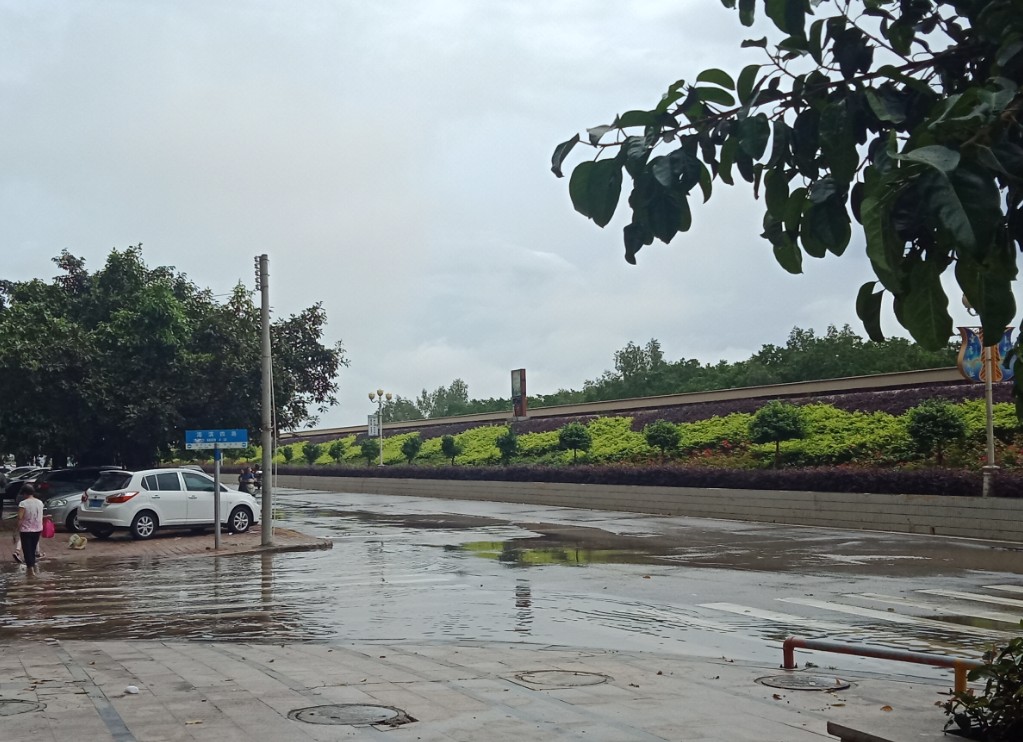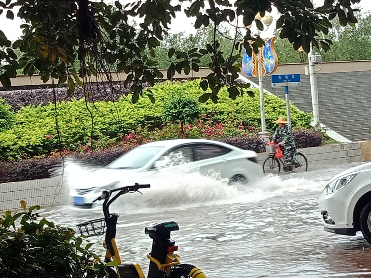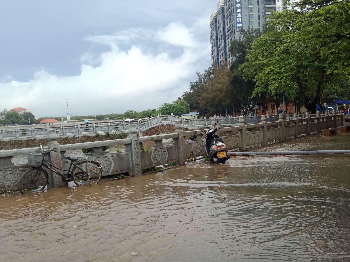 又过海堤路那边,有积水,水位不算很高吧?