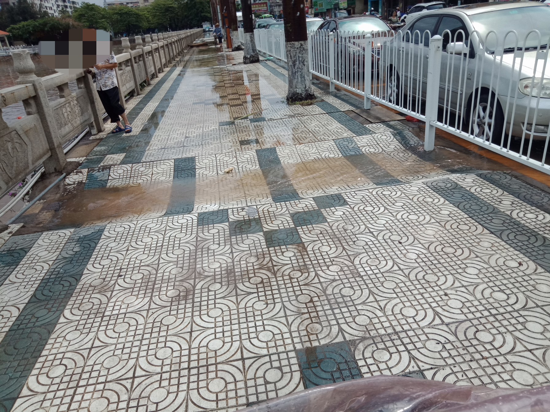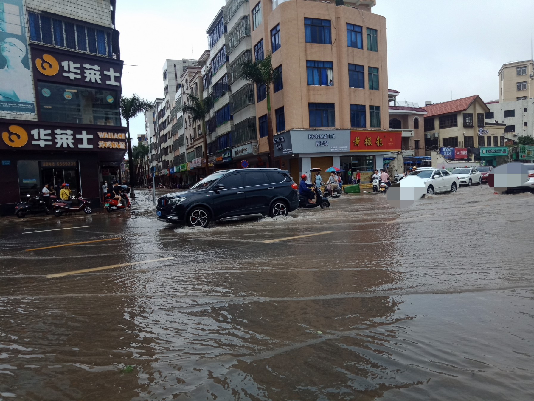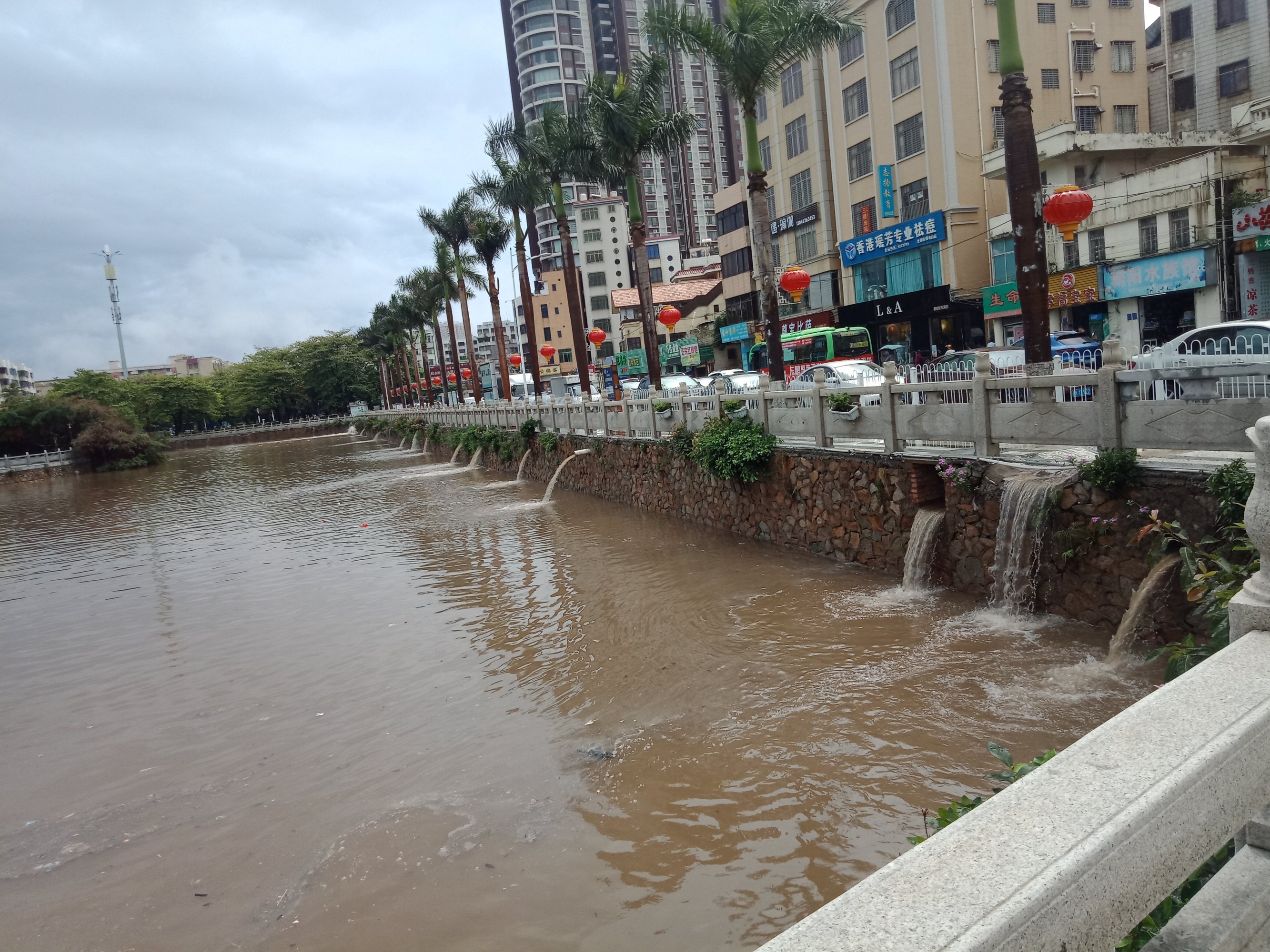 又过海堤路那边,有积水,水位不算很高吧?