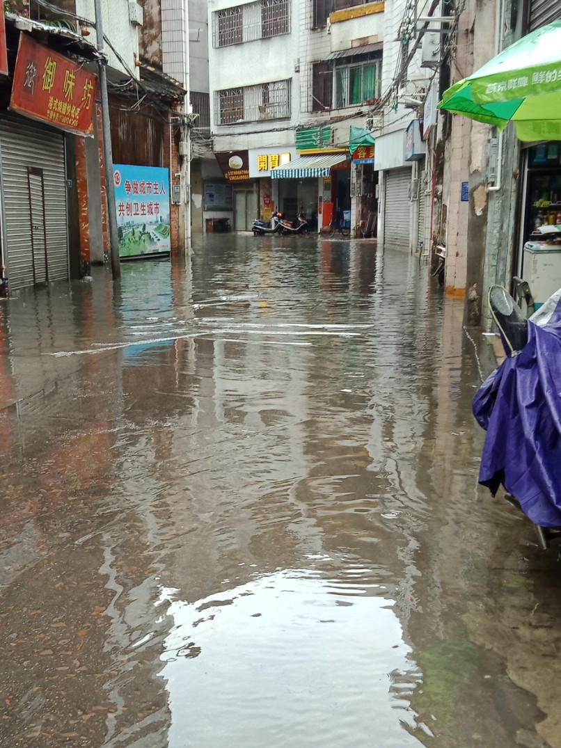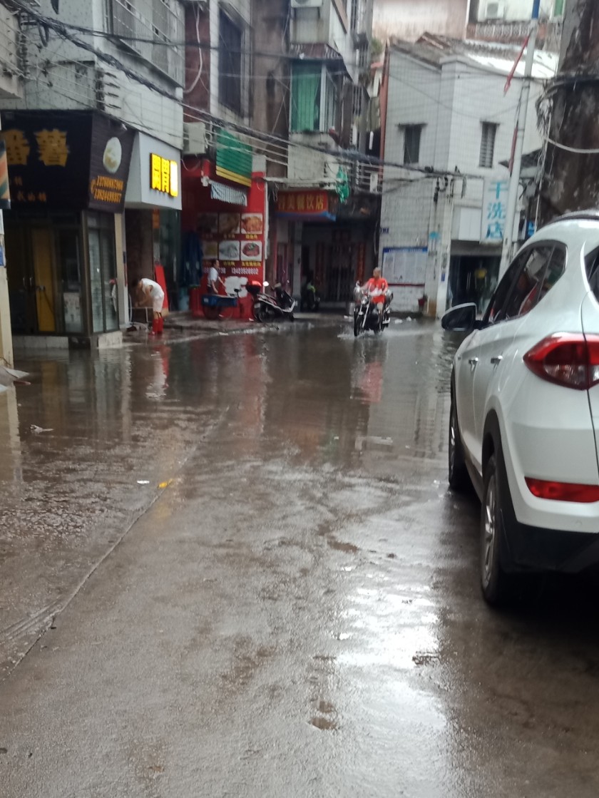 又走去解放街,原先水已退,现又积起,不过那排水口还顶得住~