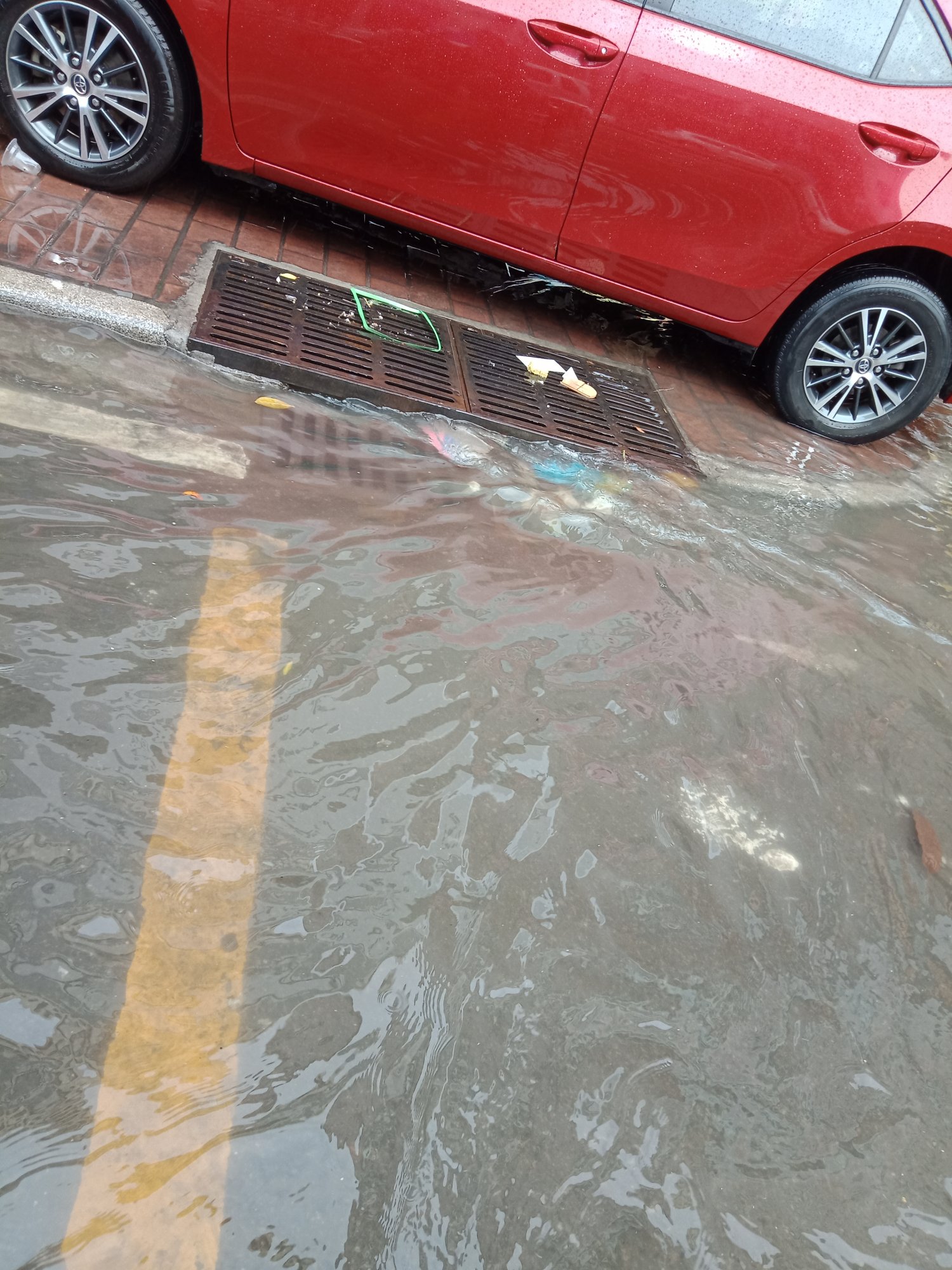 不过承认汇景商业街还有积水,也有排,但或许有段中间太凹沉,不知有排水囗否或塞?