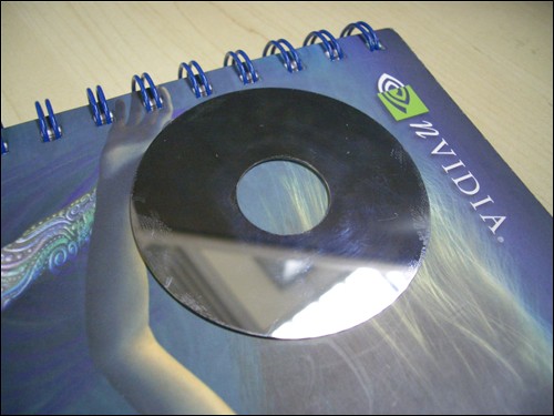 光盘盘片是非常精密的元器件,假如表面有一定程度的突起或者凹陷都会严重影响磁头的正常工作。因此盘片的表面相当光滑,比一般的镜子还要平整许多。不过遗憾的是发现用它作镜子反射出来的物体偏红褐色,大家可以试试看。需要提醒的是,光盘内部一旦暴露在含有大量灰尘的空气中后就可以算是报废了,所以请大家不要对尚能够正常使用的光盘动手。