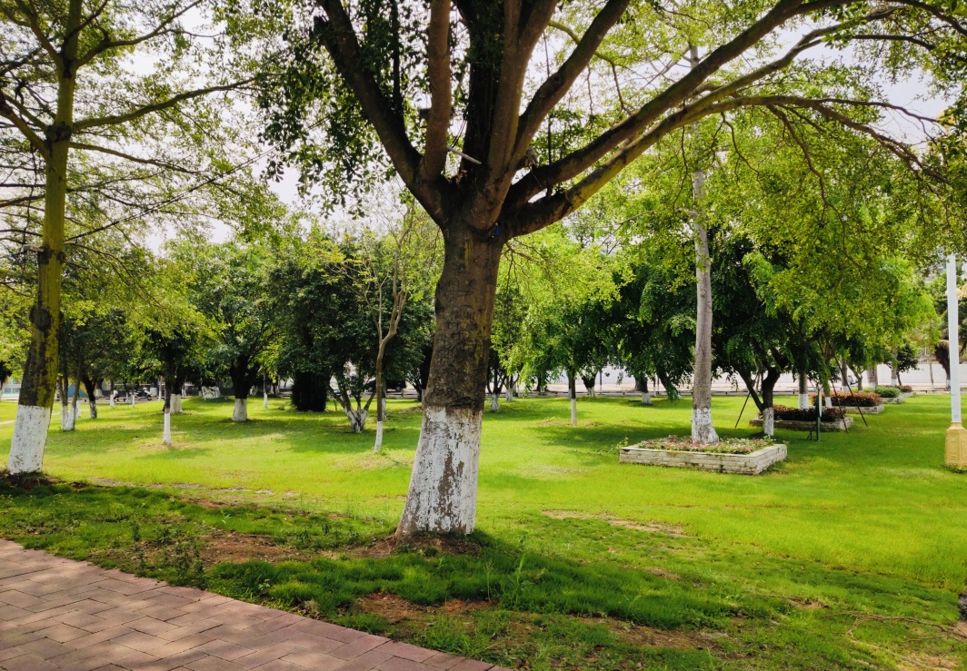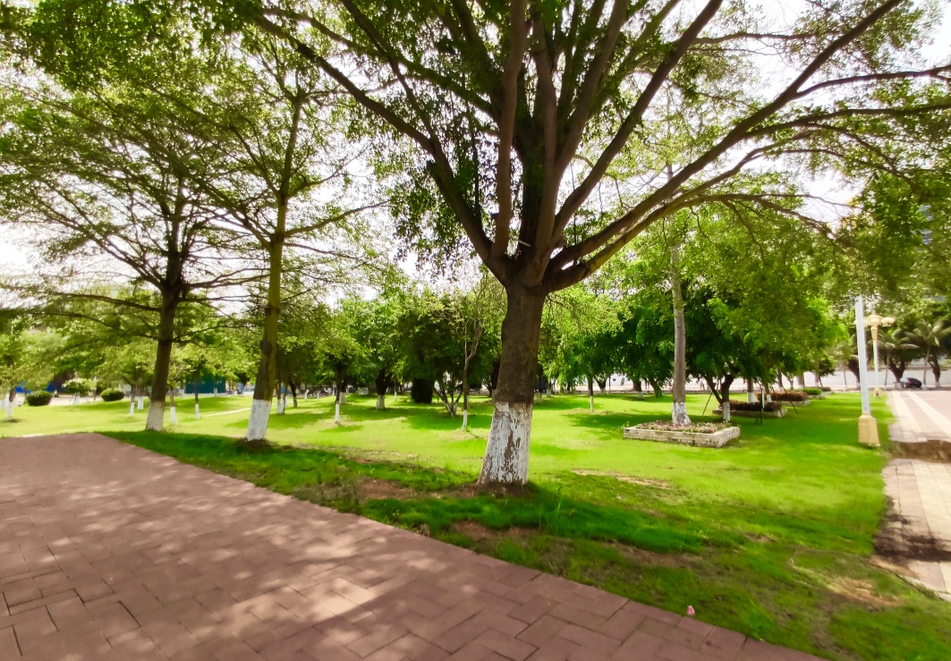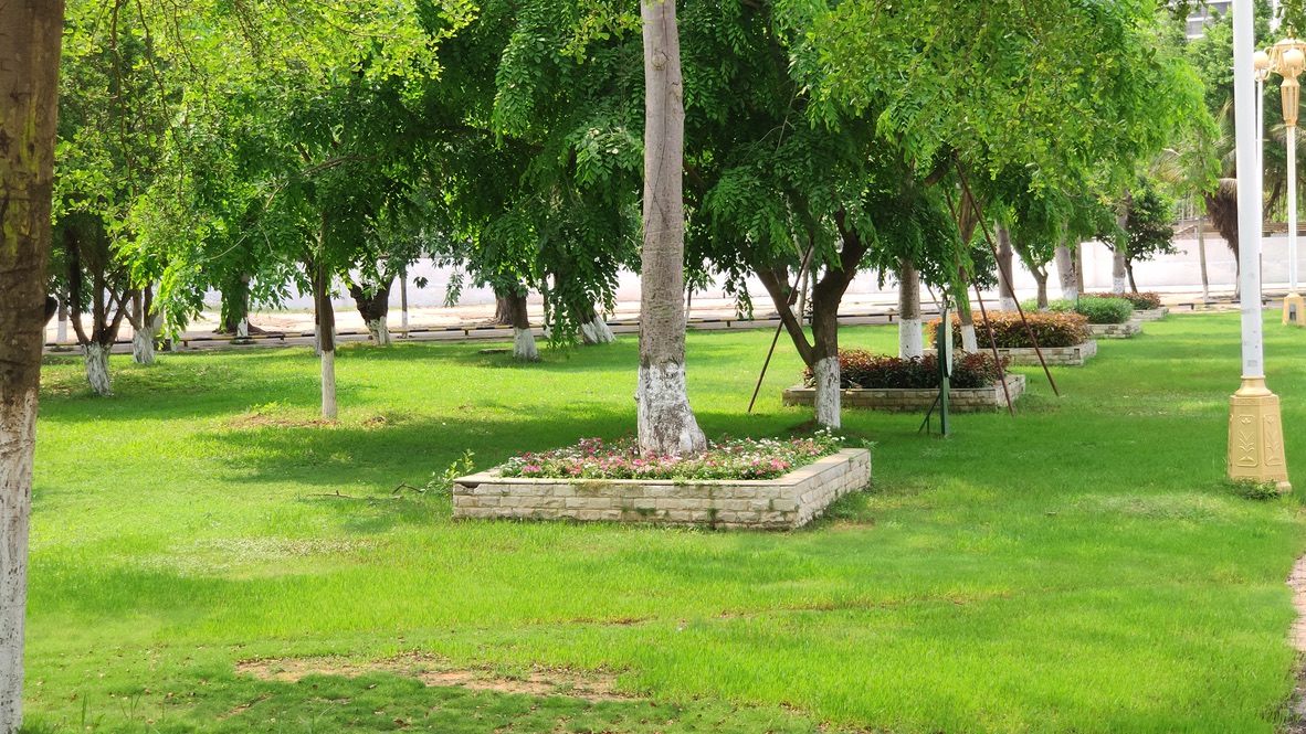 西湖公园大门进路发生巨变感赋 汪洋大海 增树添葩景色华, 游人盛赞市民嘉。 衢边椅畔安装伞, 下雨能防日可遮。