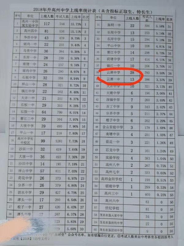 校长如果不能调动尖子班的任课教师的积极性,乡镇的尖子班也不怎么样,质量也好不了。高州的乡镇中学都不错,尤其是云谭中学和谭头中学,是乡镇中学的领头军,两间都是离高州最远的中学。一个学校的教学质量好不好,关键在于校长。