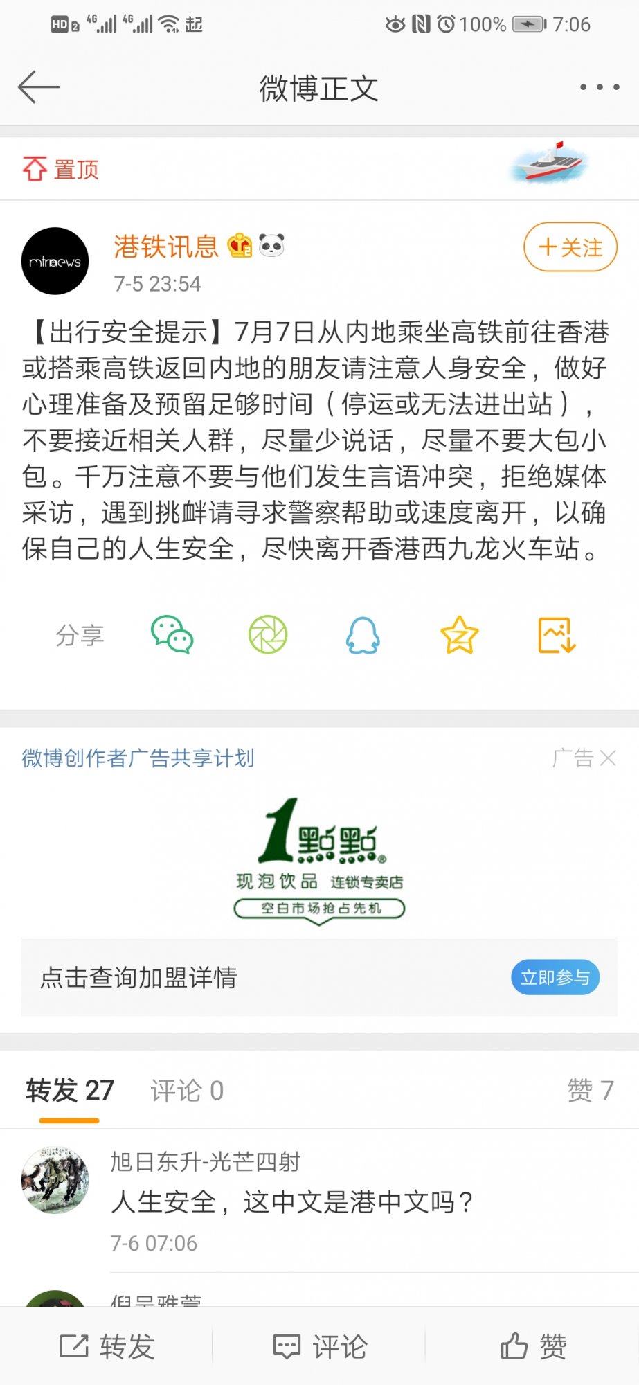 转帖 主任这些喜欢香港游的人,近期还是不要去香港了,都发安全警报了