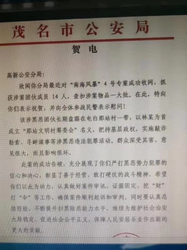 市局贺电来了