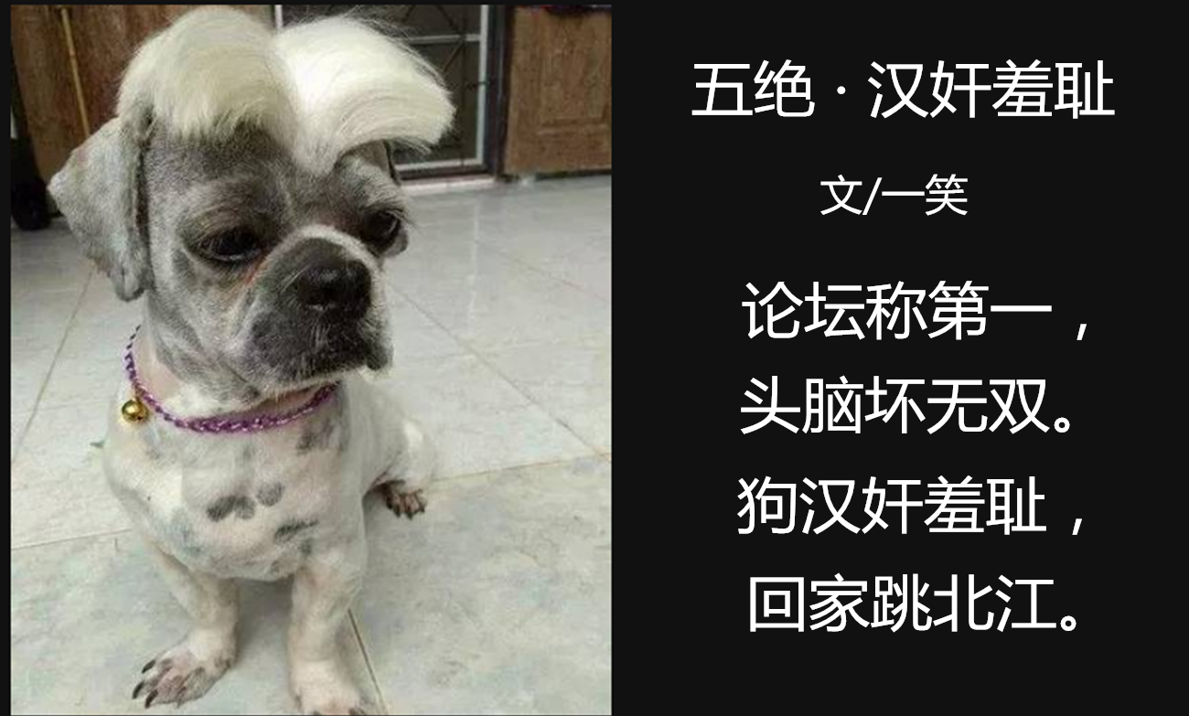哈,汉奸发型。汉奸狗,汉奸马甲。