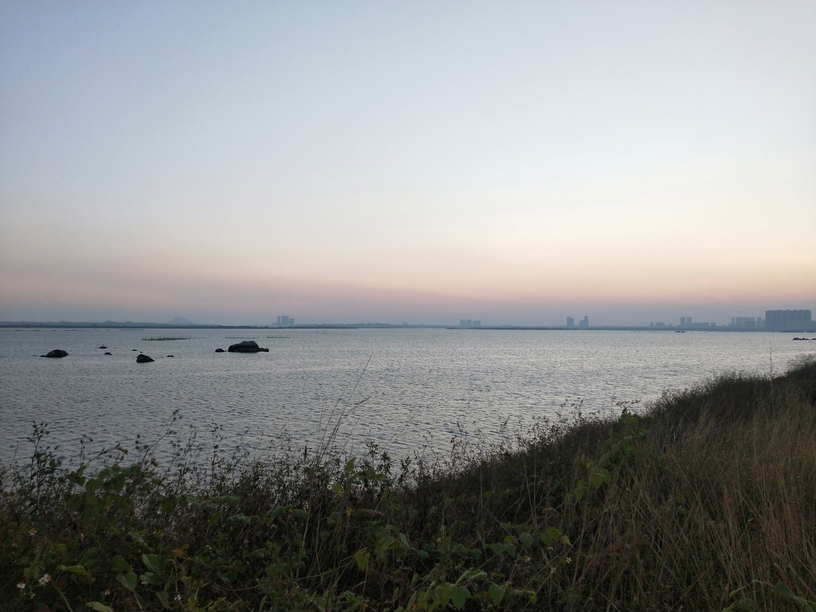 我在黄昏时分到达陈村码头,只见有几十艘渔船停泊于此,有一渔民在用水管冲洗船壳,另有二三人在看风景,我沿着堤坝行了2里路,两边杂草丛生,听说着潮水时堤坝上排满钓客,时有胶腊鱼。