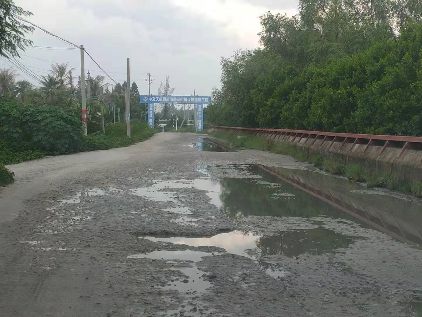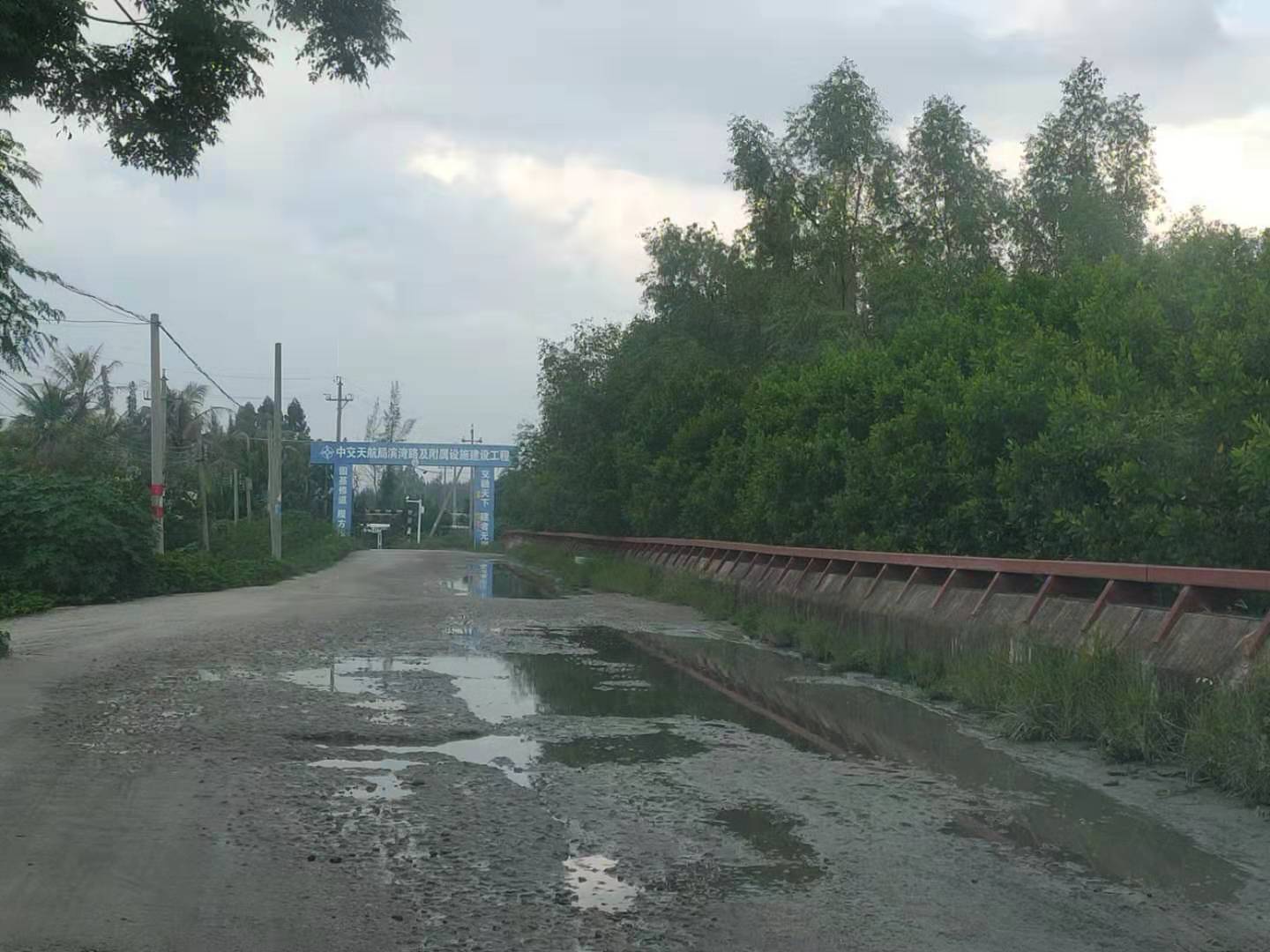 滨湾路段停工已久,加上现在泥头车和油罐车严重超载,做好的路基已经破烂不堪了。市民出行不便,特别是泥头车和油罐车经过,灰尘滚滚,给市民身体健康带来诸多不便。希望有关部门尽快复工建设。