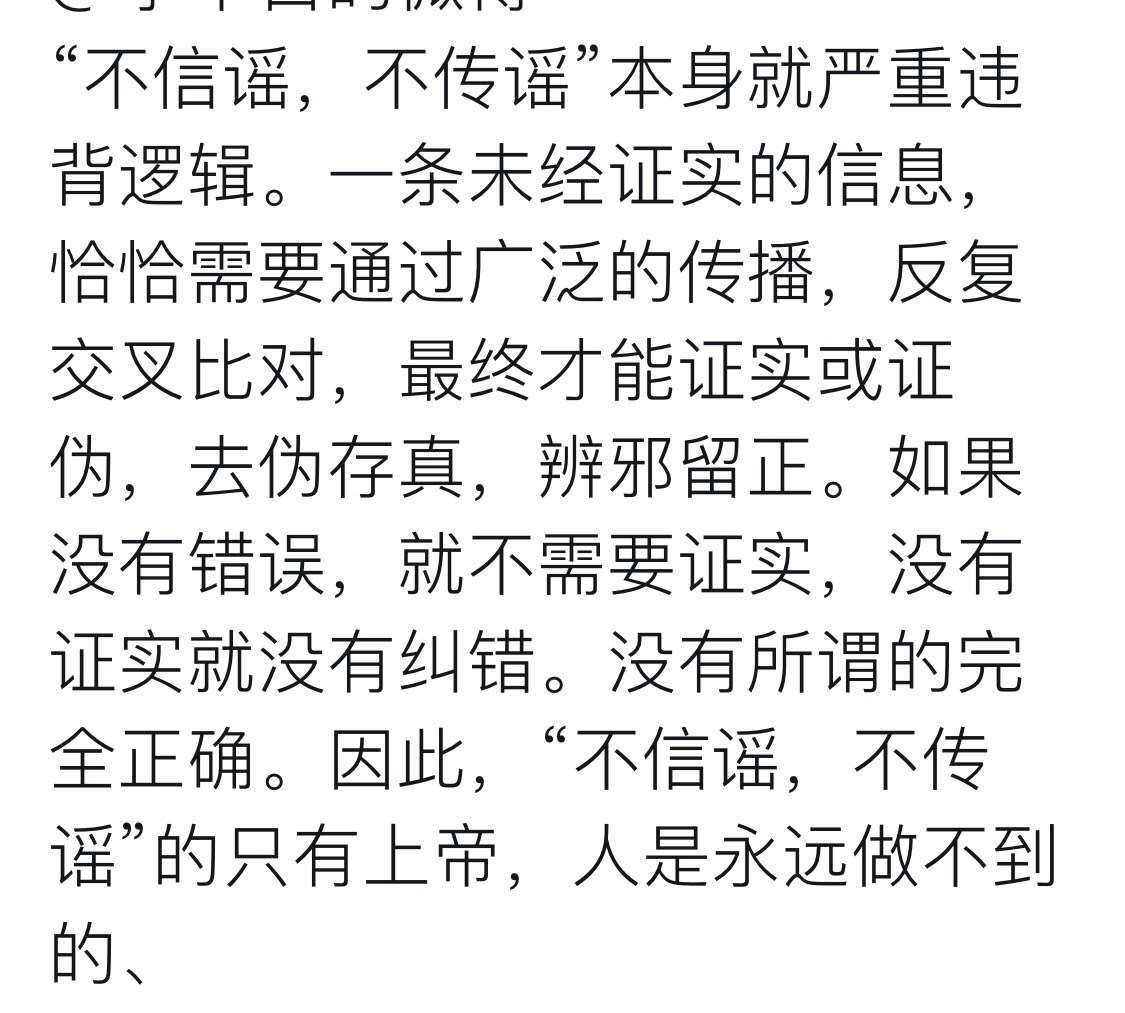 不信谣不传谣的只有上帝才能做到。可惜整个国家都被一个强盗逻辑指导着前进,万劫不复啊万劫不复啊!