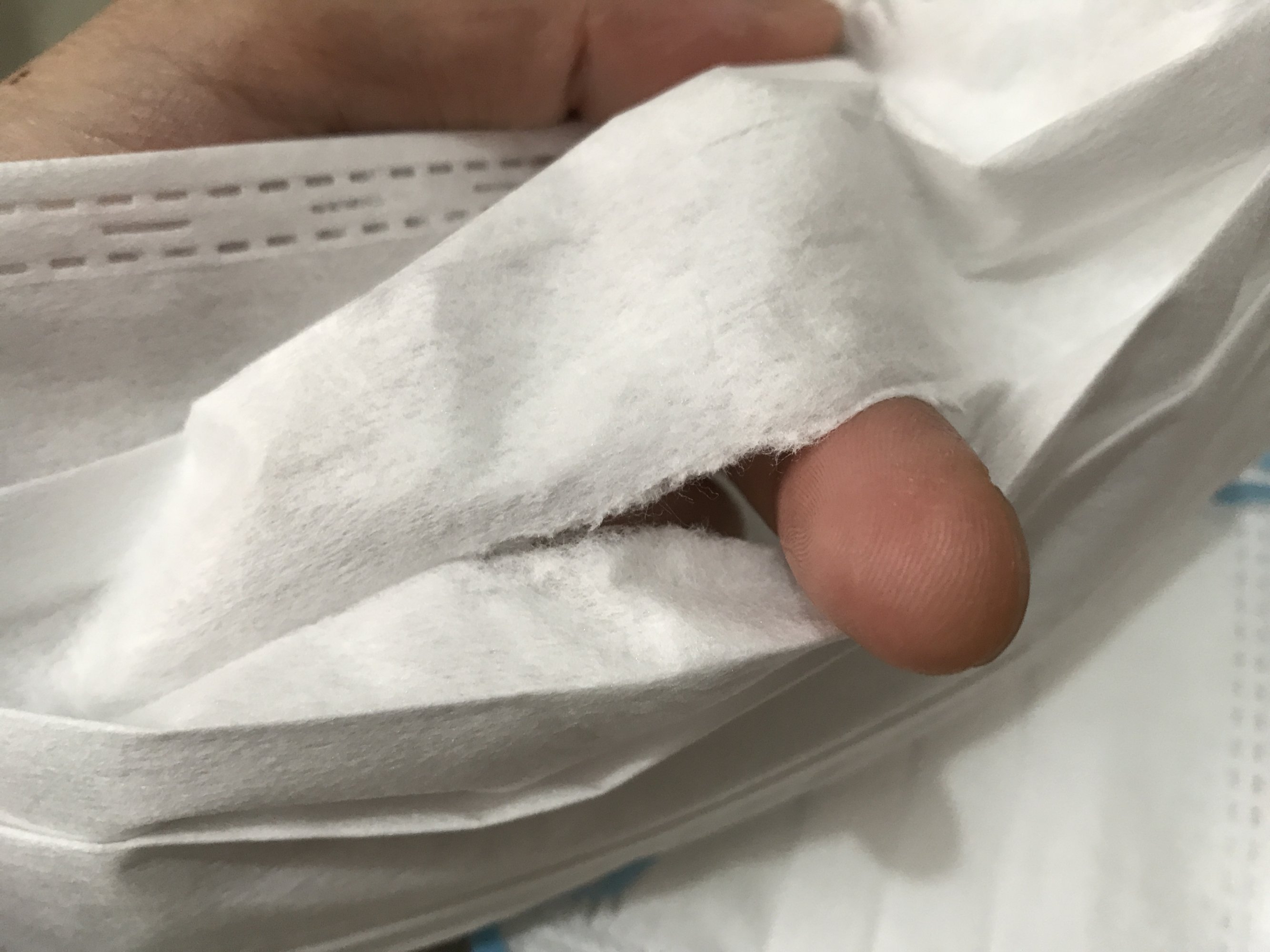 家属拿回的员工口罩,我直接用中指戳穿它。