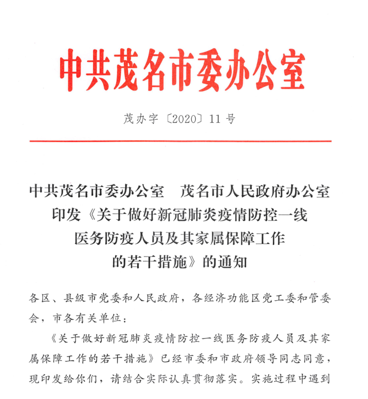 求助 电白区关于落实中央、省、市委文件精神中防疫抗战中医务人员临时性补贴的“正确”行为