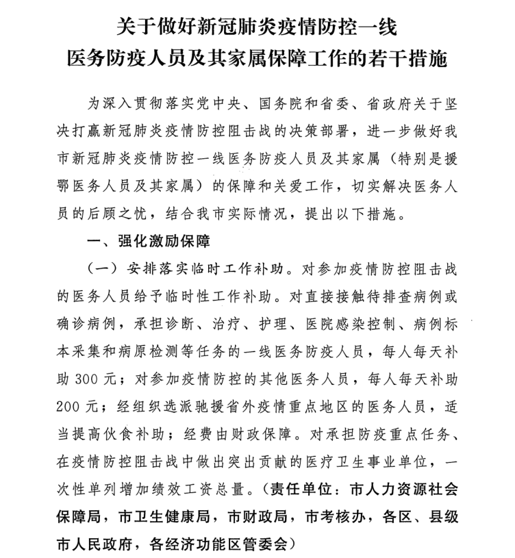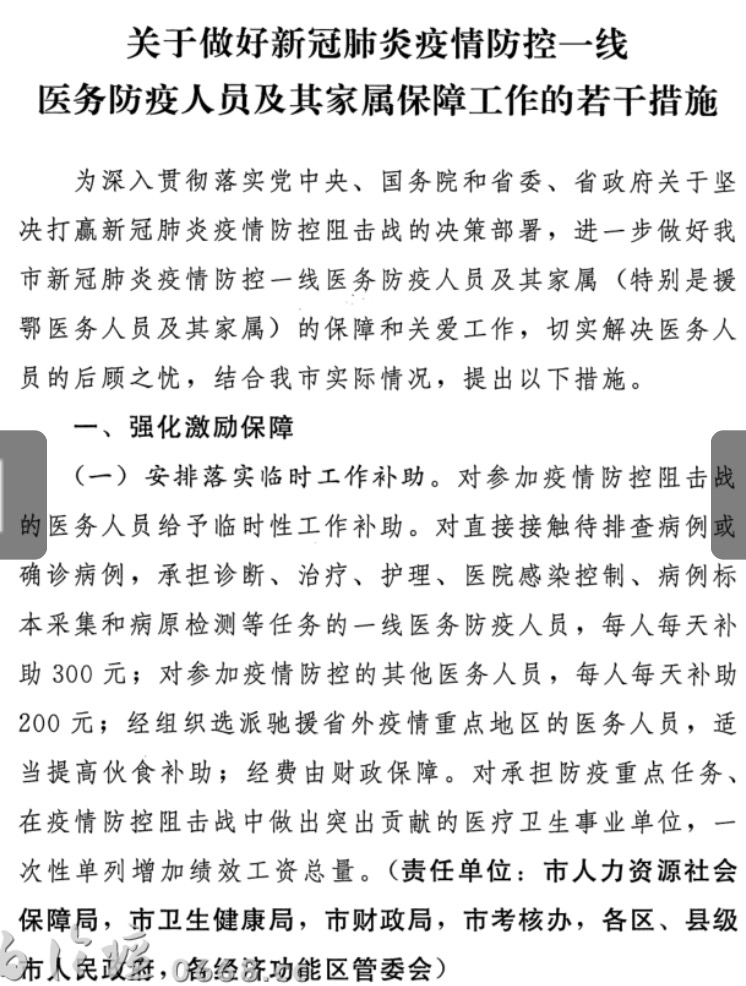 按照市文件,写得很明白,防疫工作应该有补贴的,而且是按天计酬,有理有据,辛苦钱一分也不允许少