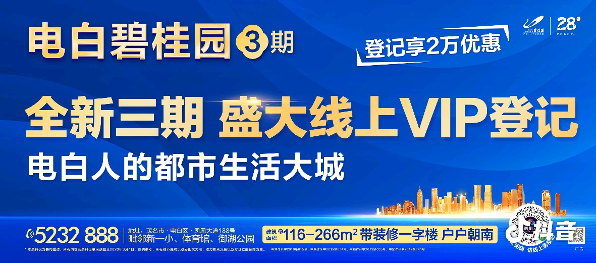 X x378390704 幼儿园 注册 2020-03-01 消息 11 反馈评分 0 点数 0 年龄 33 性别 男 2020-03-03 #1 【电白碧桂园·3期】 全新三期 盛大线上VIP 登记 登记享受2万优惠 电白人的都市生活大城 约116-266㎡带装修户户朝南 登记热线:17827767697林劲 附件 微信图片_20200301112305.jpg 208.5 KB · 查看: 636