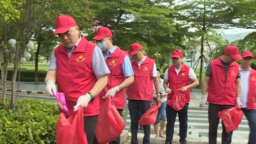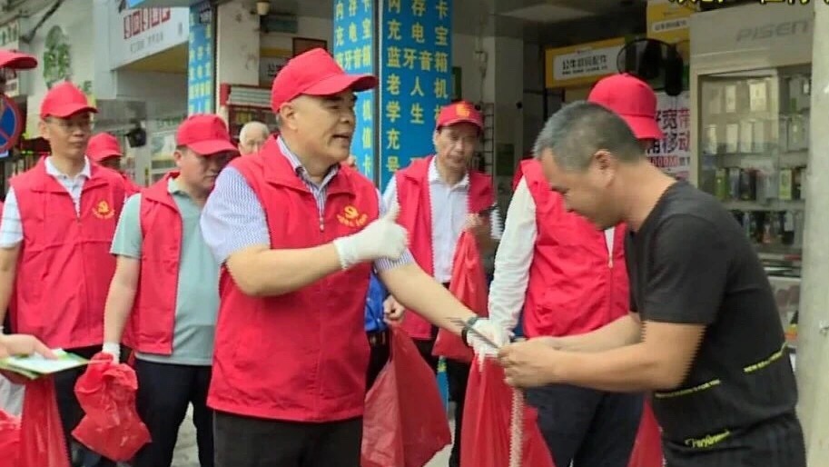 带头的是不是区长大人?亲身带队搞清洁拾垃圾,是在做示范还是做秀啊?