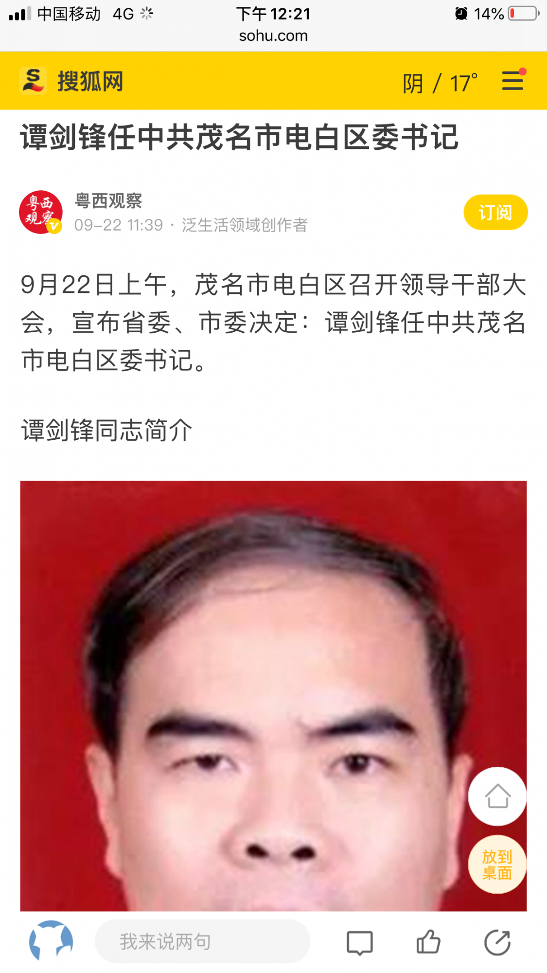 梅菜扣肉 副教授 注册 2017-10-05 帖子 2,074 反馈评分 151 点数 101 所在地 电白水东 2020-09-23 #50 刚刚打开茂名发布公众号看,确实是删了。。电白区新闻中心公众号“今日电白”昨天发布的也删除了。奇了怪了。