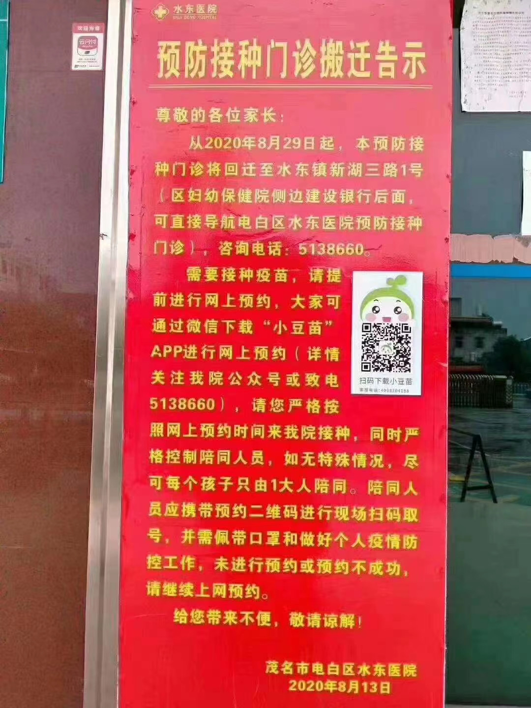 bihaitian 说: 不知是我错了还是你错了,月初到哪是不可以打的,包括预约也不行,都要到西湖原妇幼保健哪打了 点击展开... 根据省疾控要求,指导部门不能开展预防接种业务,所以接种疫苗业务早就不是区疾控中心的了,业务早就已经移交水东镇医院,八月底已经搬到原妇幼旧楼了。