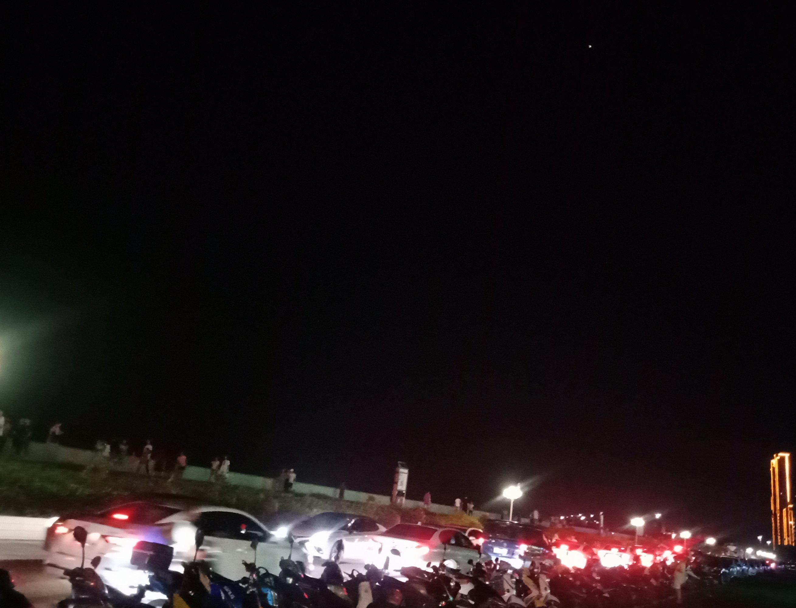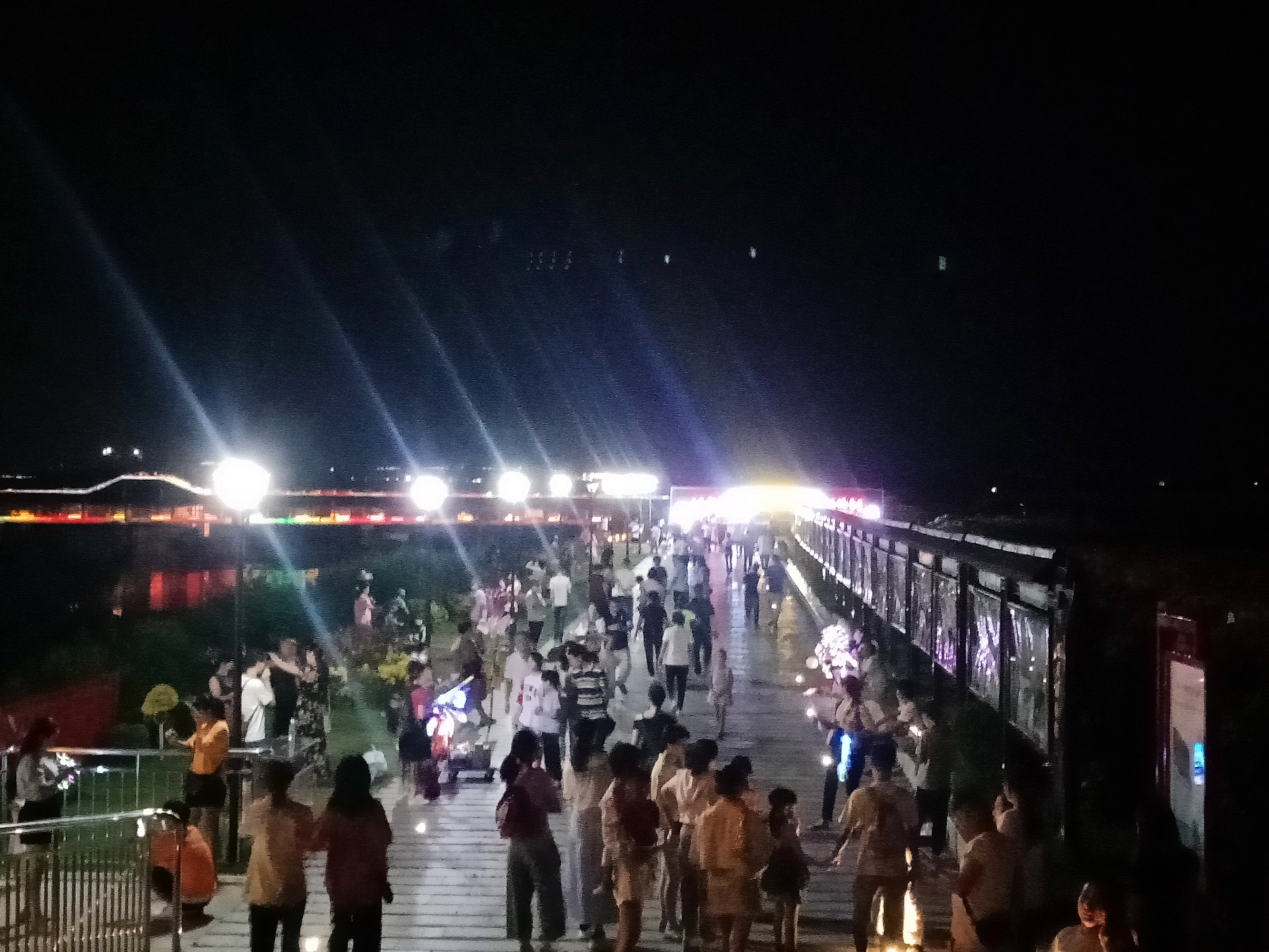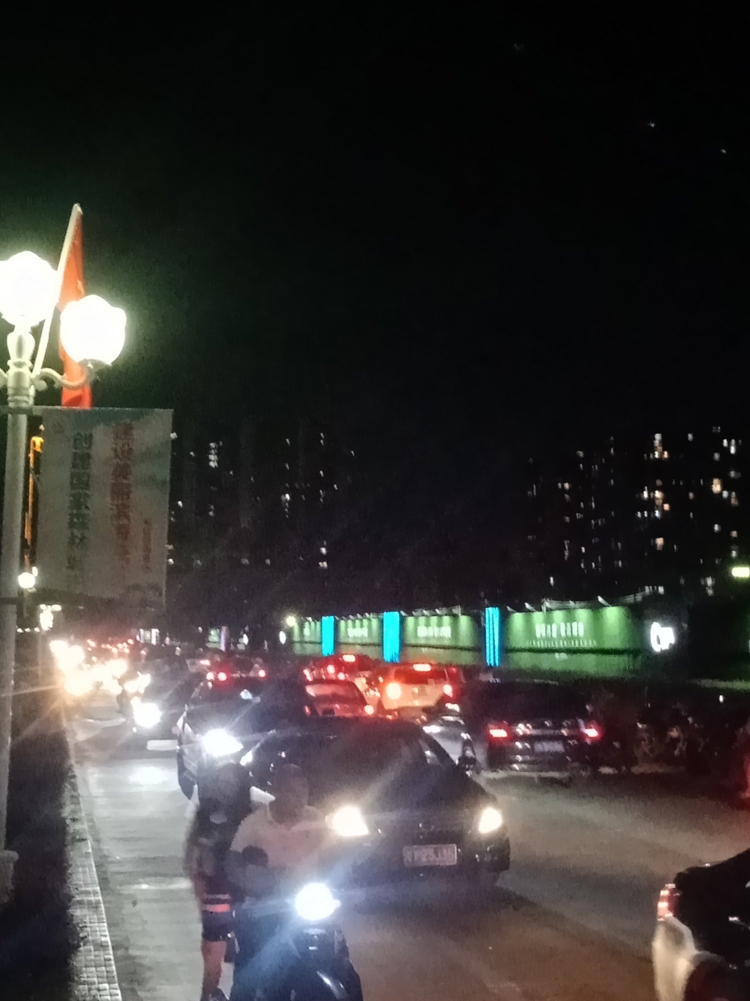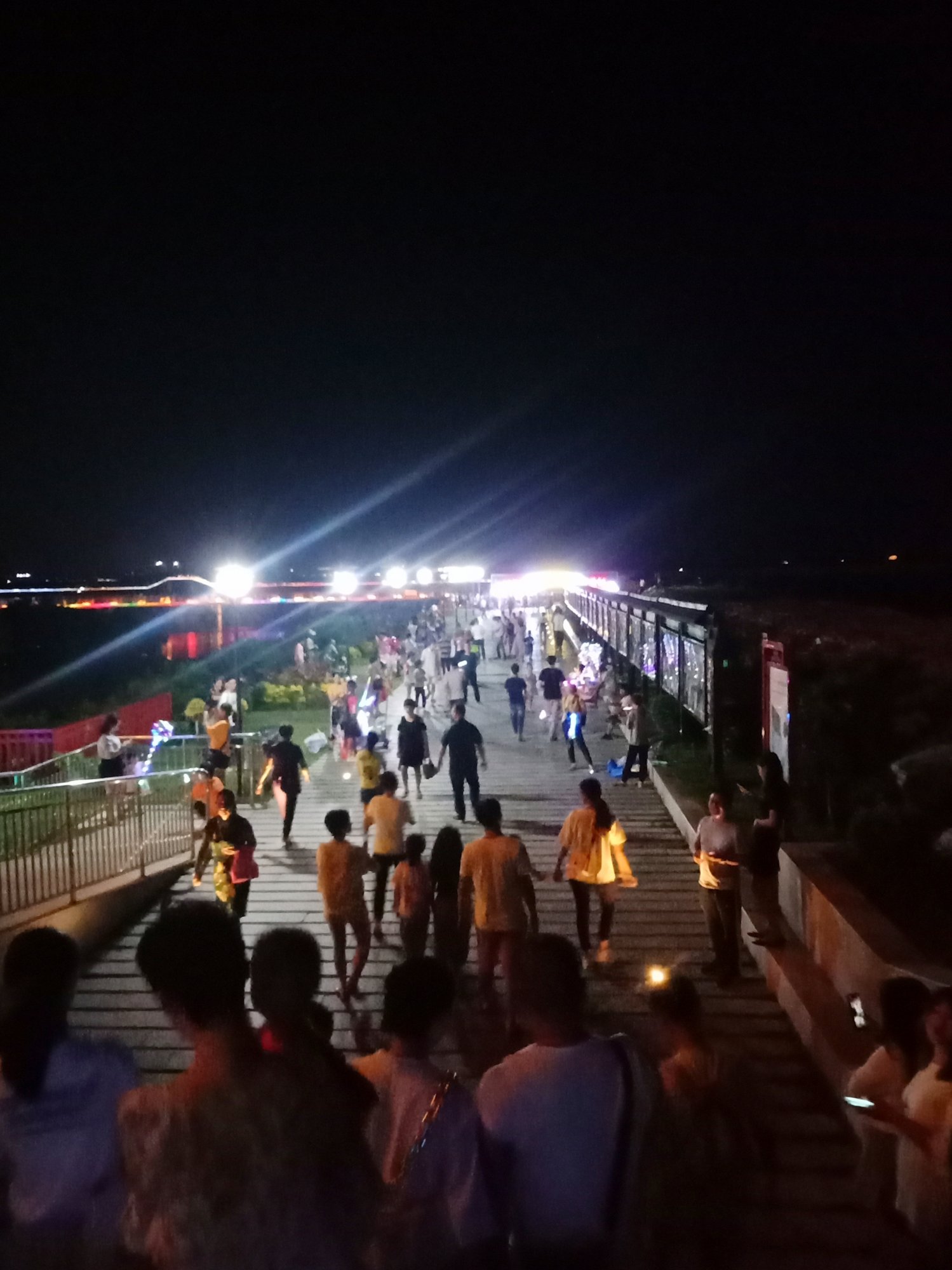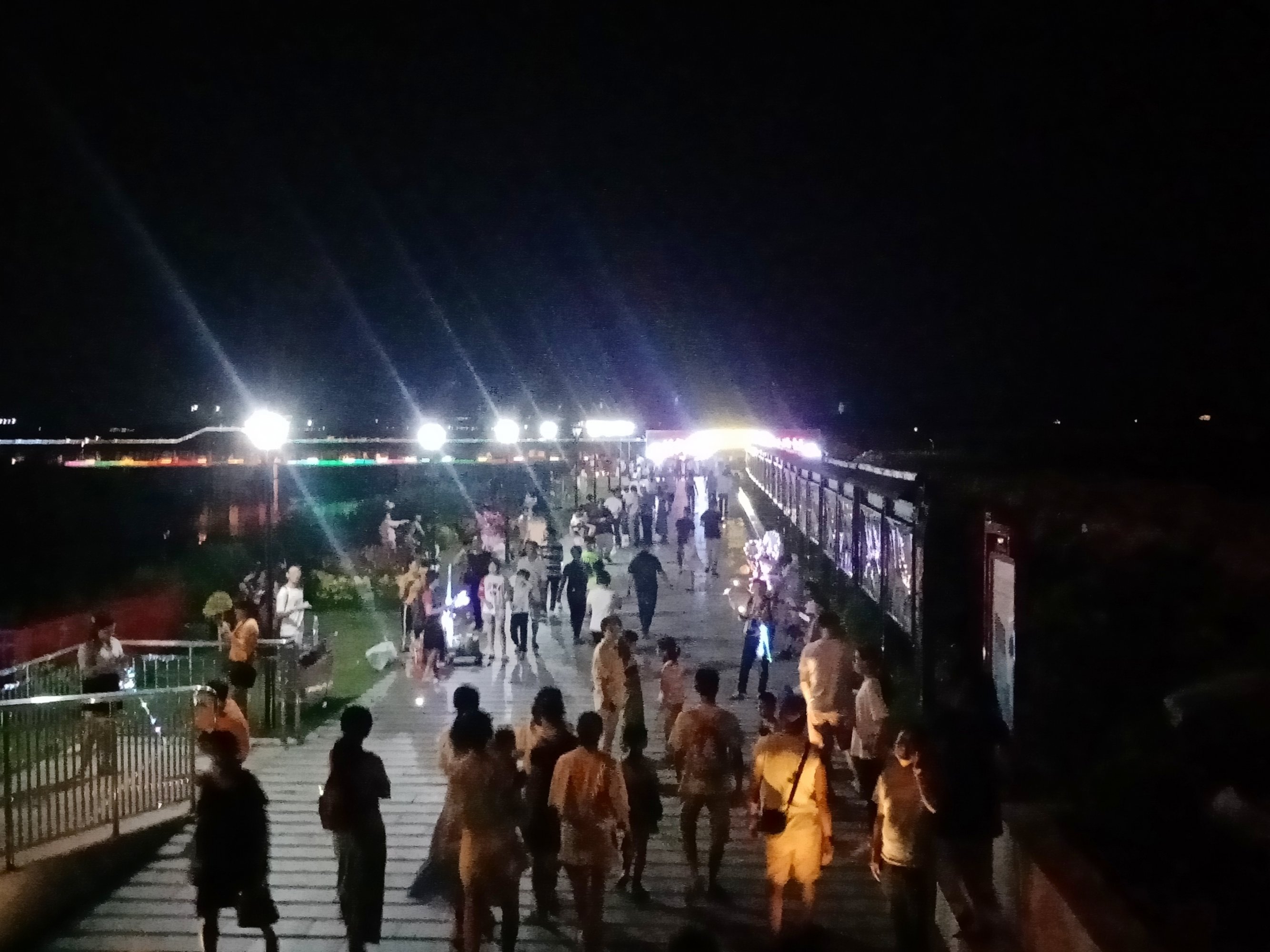 交流 今晚天气不错,水东海堤路步行绿道栈道人来人往车来车往