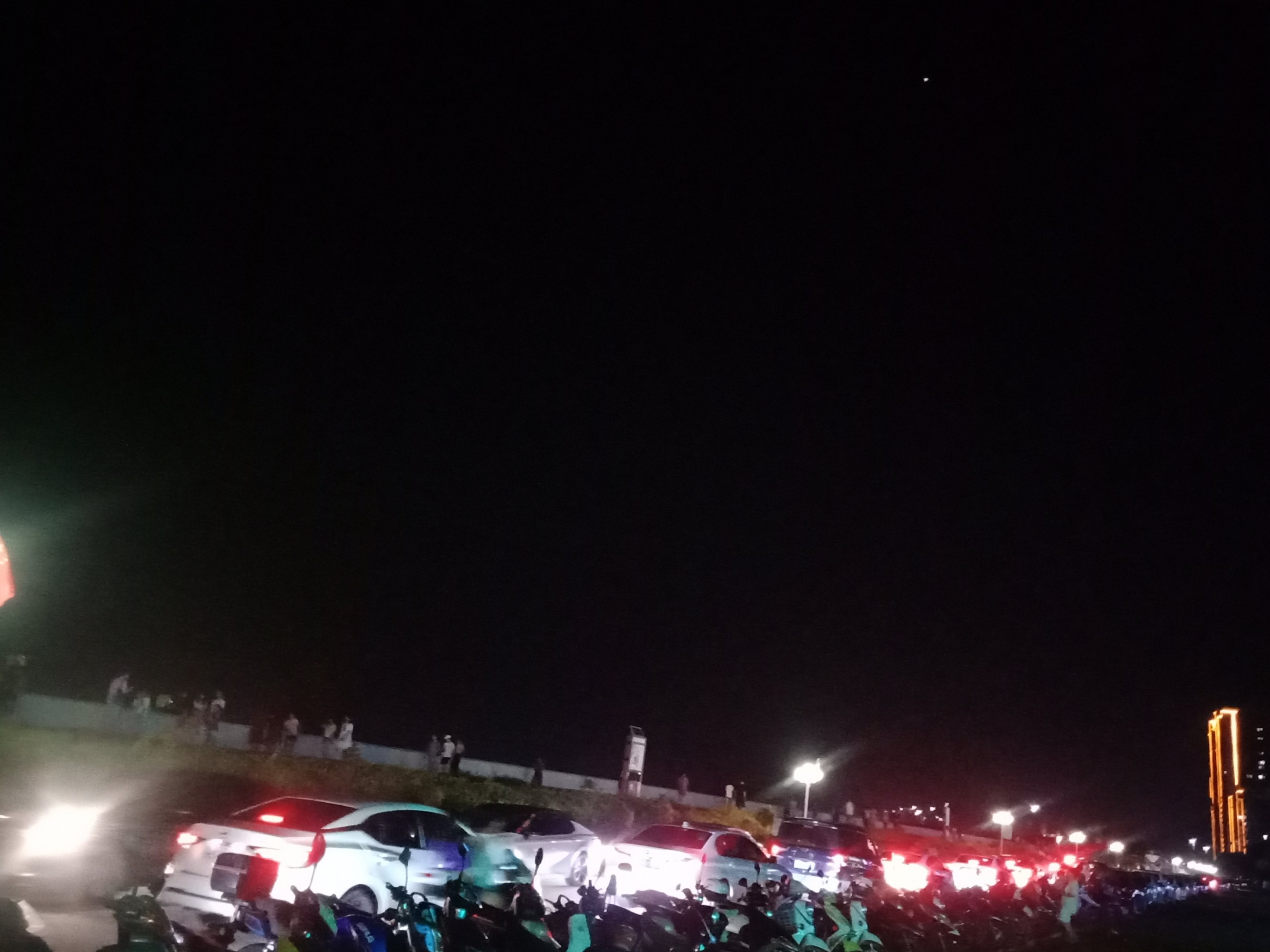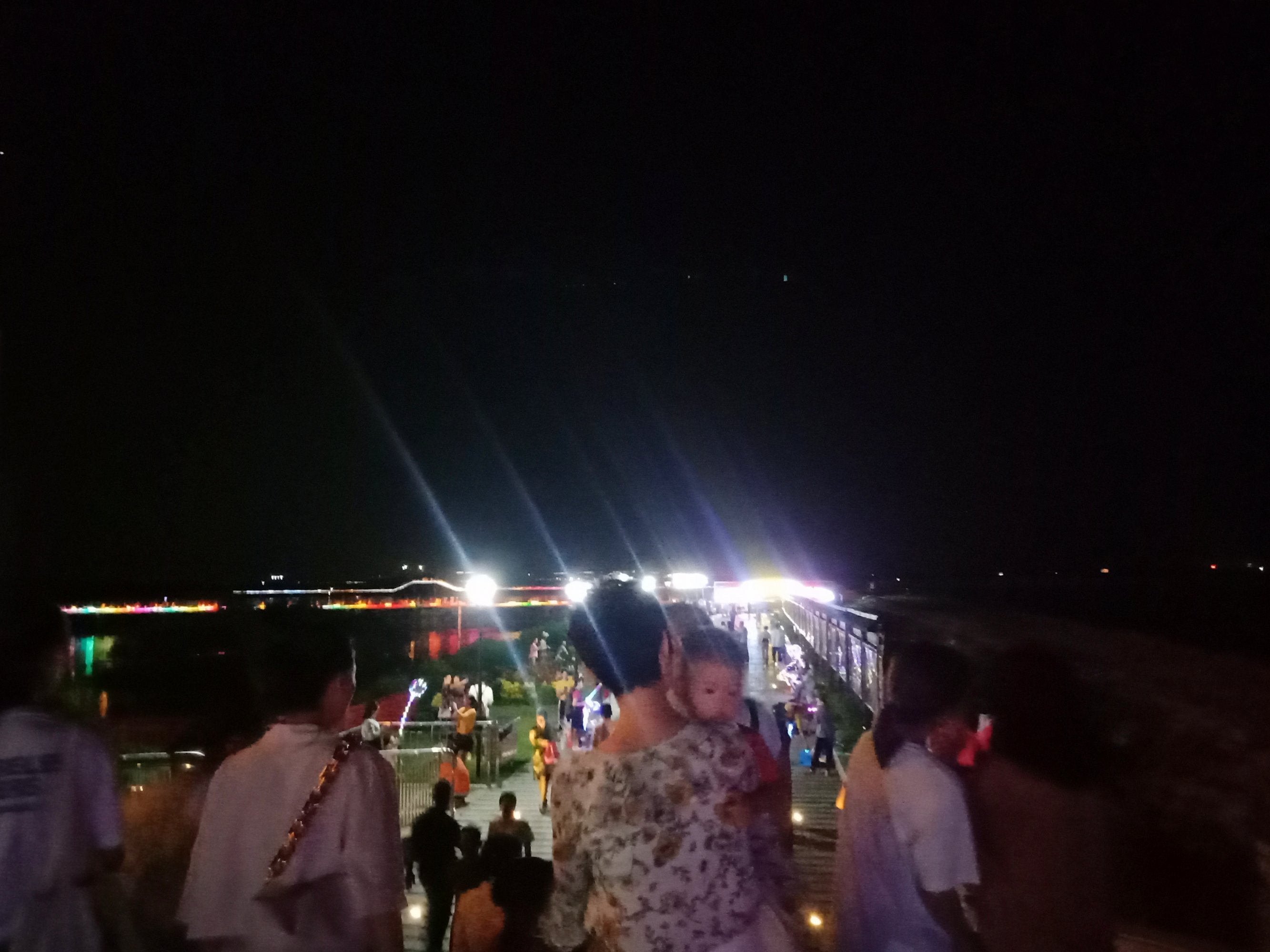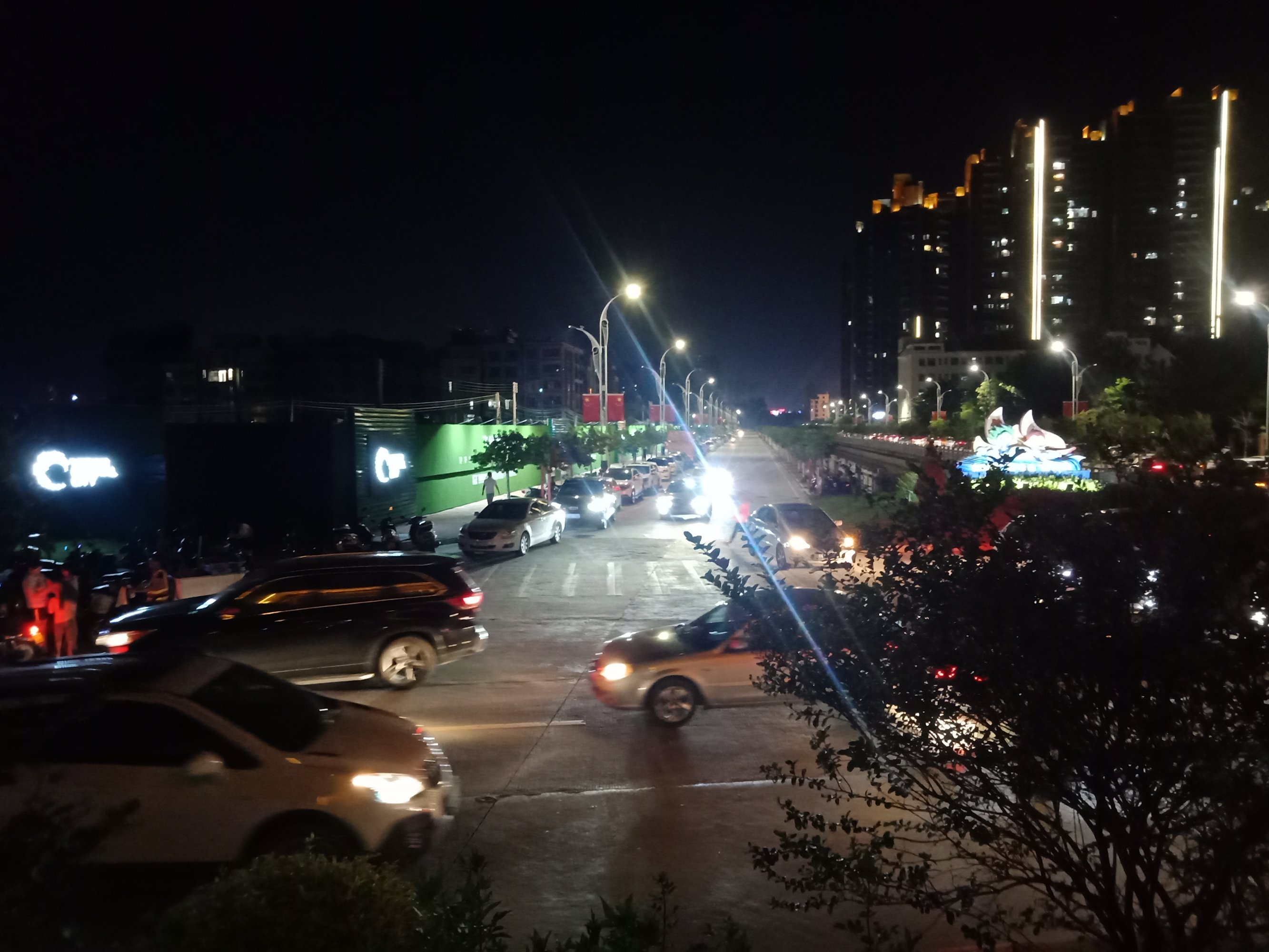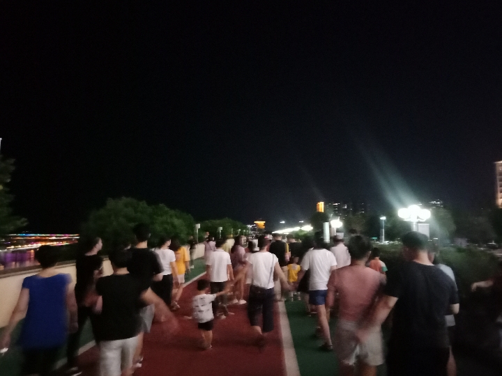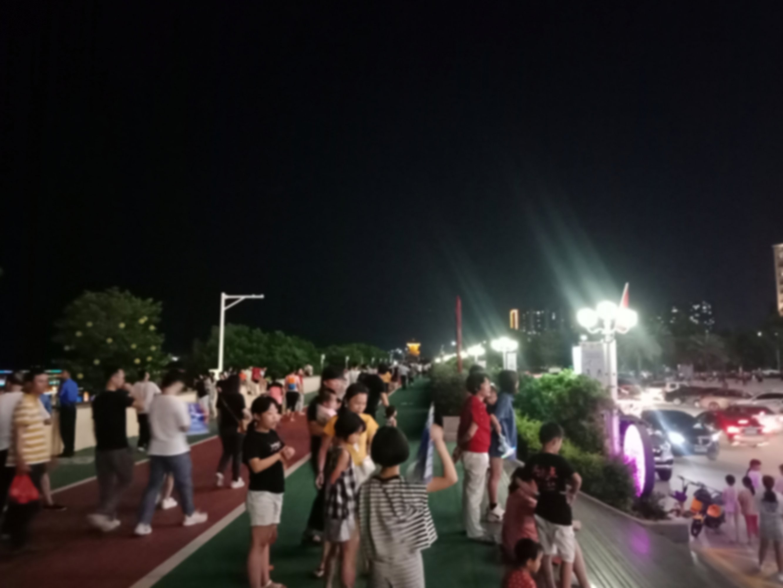 交流 今晚天气不错,水东海堤路步行绿道栈道人来人往车来车往