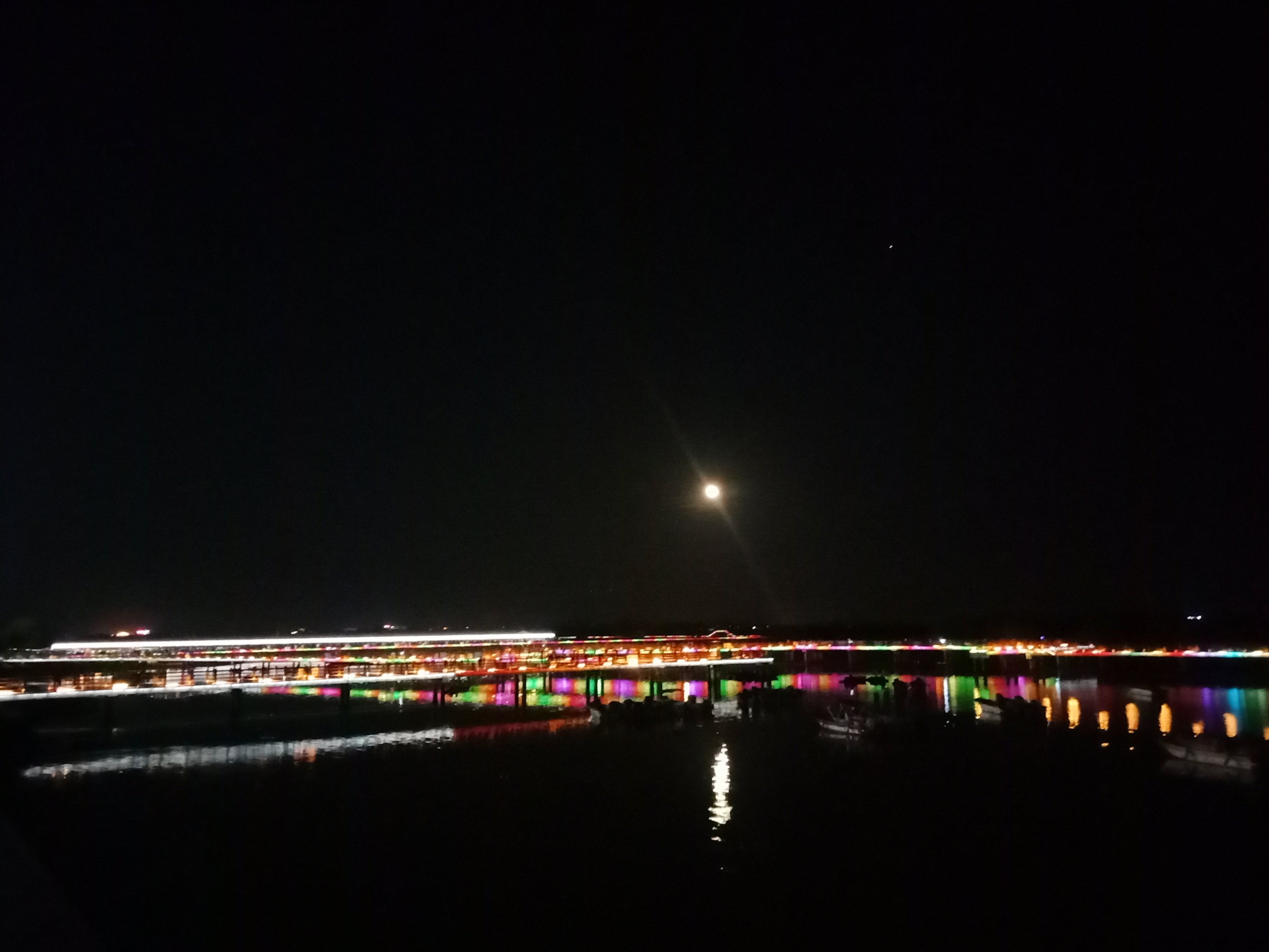 有好几辆旅游大巴到来,今晚不单没下雨,刚好涨潮,水色一线