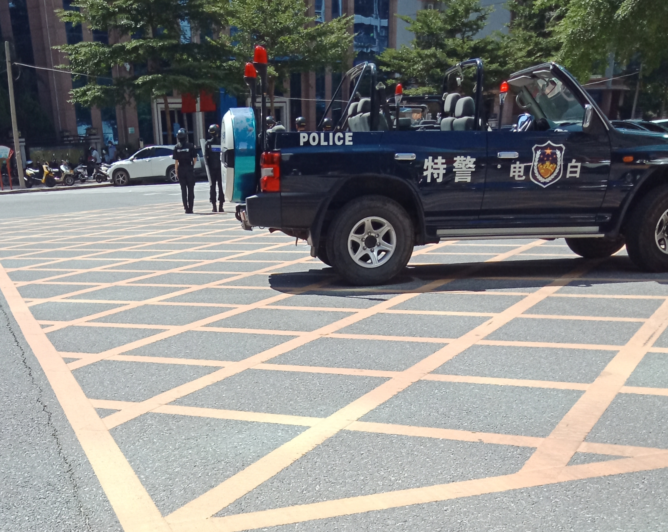 :biggrin:中午去了下万达广场找点吃的,竞发现万达广场里外也有公巡在巡走