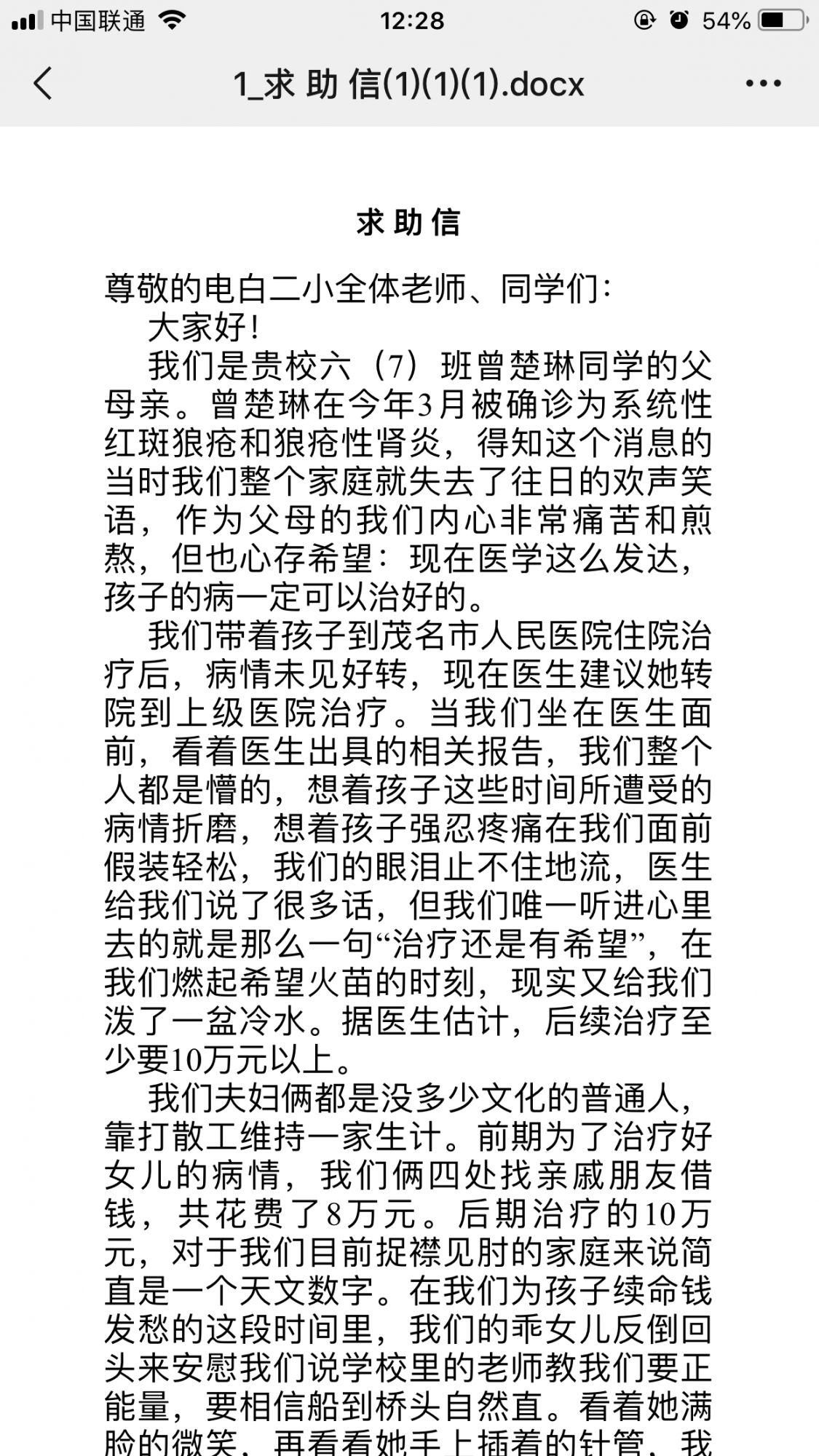 一个学校就是应该帮自己学生【电白二小校长室】一、请班主任把上面的求助信转发家长群,动员家长捐款,由班主任收好;老师们自己的捐款,先集中级组长处,再交总务处;