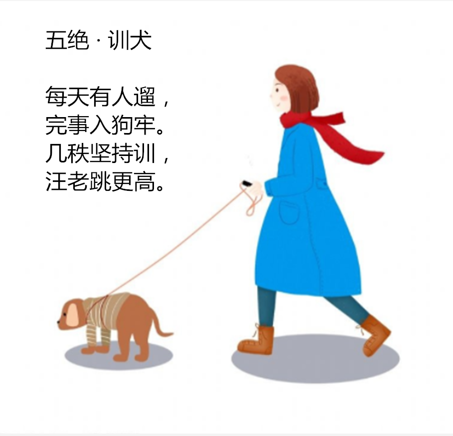 电视台 教授 注册 2020-06-07 消息 2,511 反馈评分 249 点数 101 2021-01-04 #2 五绝·训犬感冒 文/-笑 每天有人遛, 完事入狗牢。 几秩坚持训, 汪老跳更高。 最后编辑: 2021-01-04