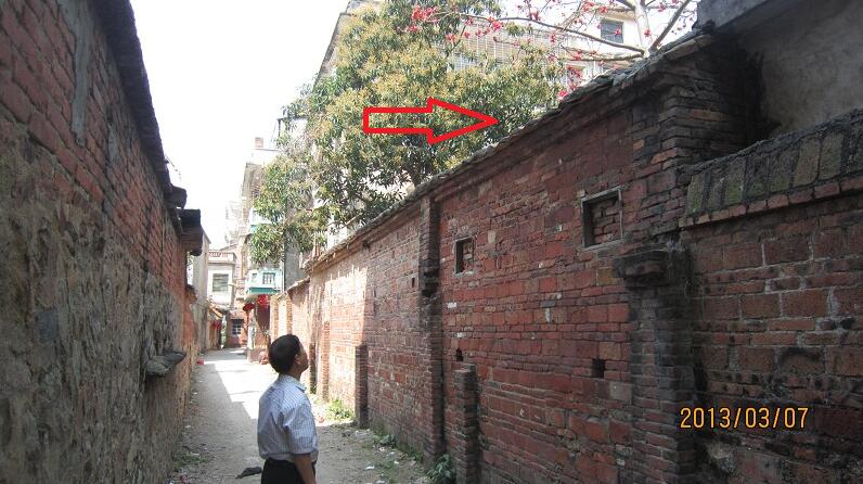 有红色箭头指向的地方是木皮行一横巷入口东,稗龟亮曾住在一横巷里面,出入无声无气。