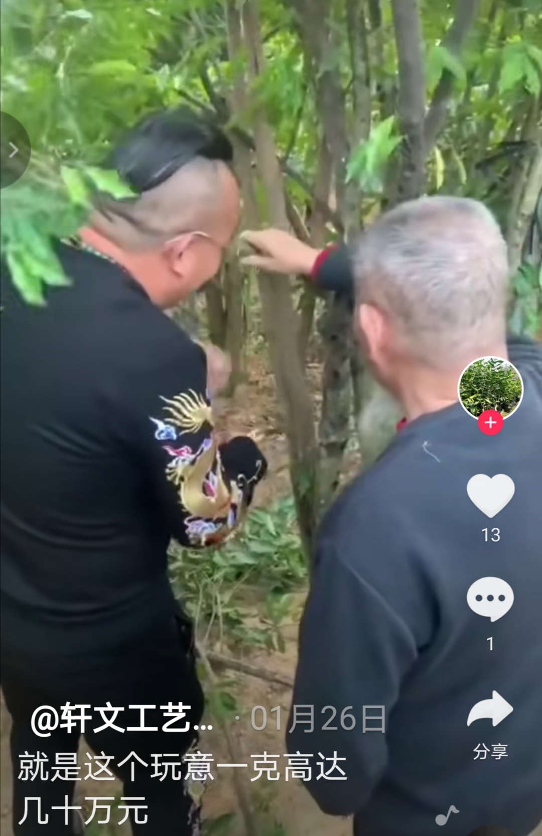 淘宝上有木材加重化学品,有香精,成品要造假很容易,就算是不造假的也是人工打洞的速成产品,没有玩的价值。现在主流主要是卖树苗,看谁是最后的接盘侠。